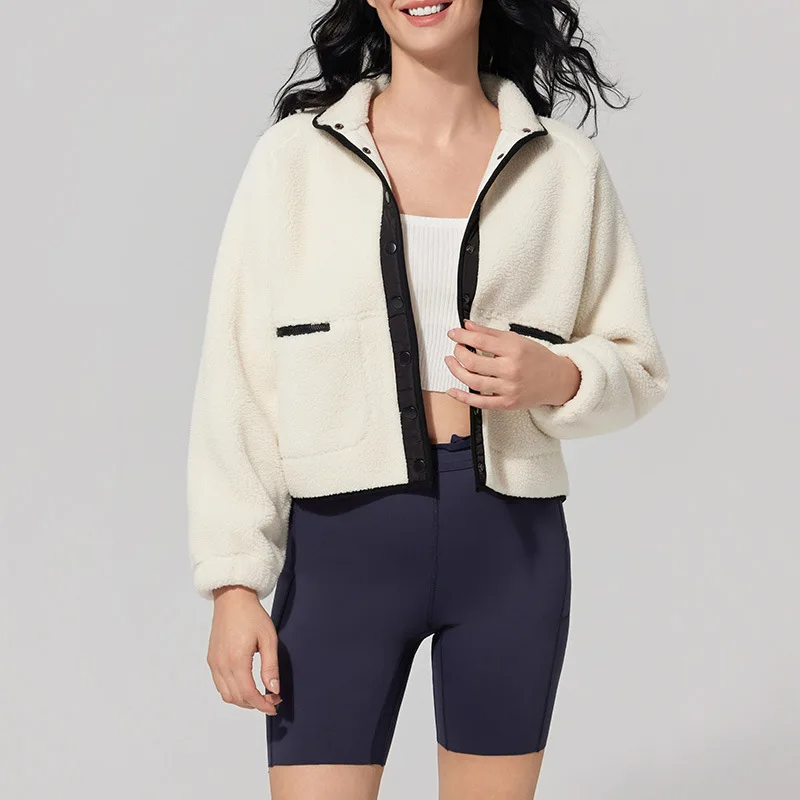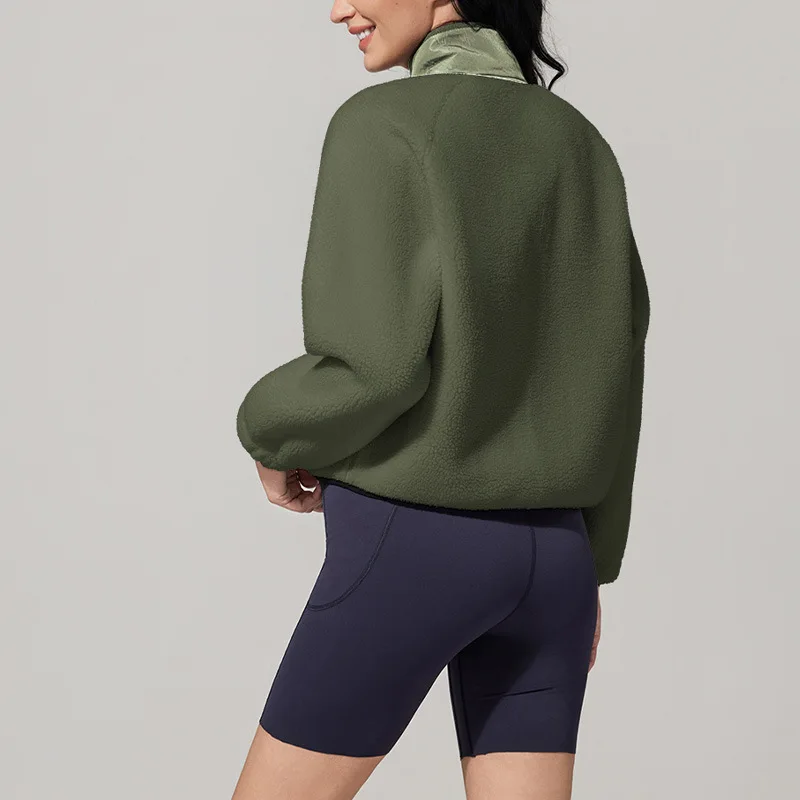 Roregal Winter Warm Polar Fleece Women's Short Coat Stand up Collar Windproof Warm Casual Top With Pocket