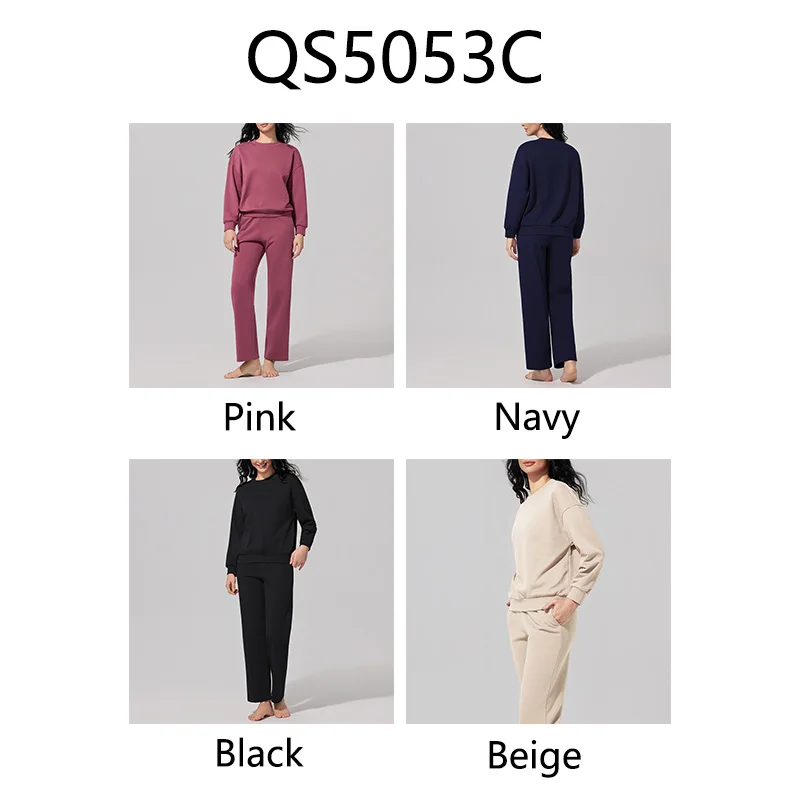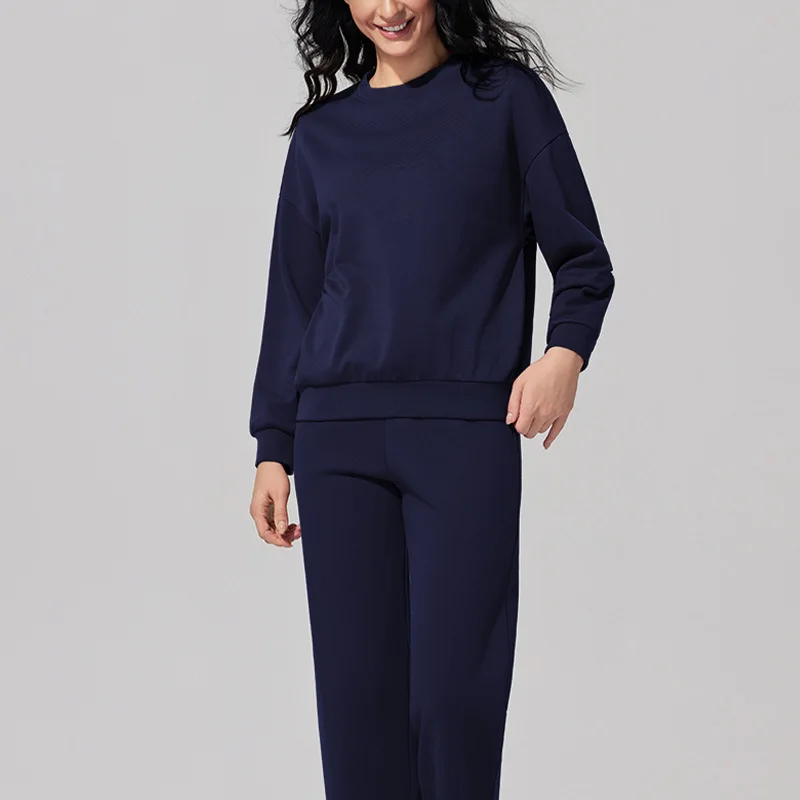 Roregal New Pullover Round Neck Sweatshirt Set Loose Long Sleeved Top Elastic Waisted Pants Sports Set for Women