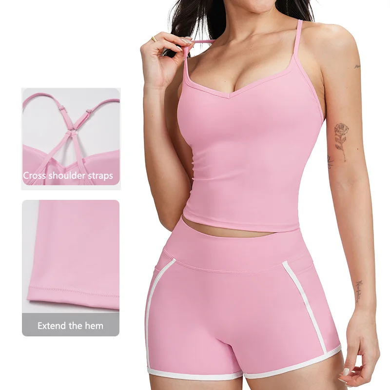 Roregal New Style V Neck Yoga Top Nude Fabric Fitness Crop Top Cross Back Fitness Yoga Bra