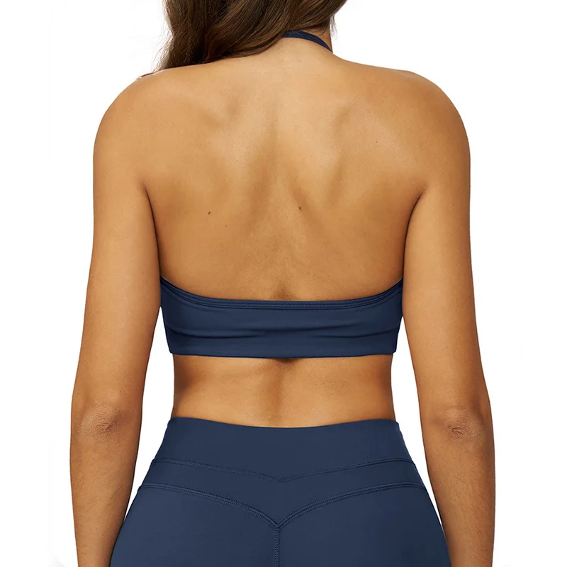 Roregal Quick Drying Brushed Yoga Bra Women Fitness Sport Halter Bra With Chest Pad