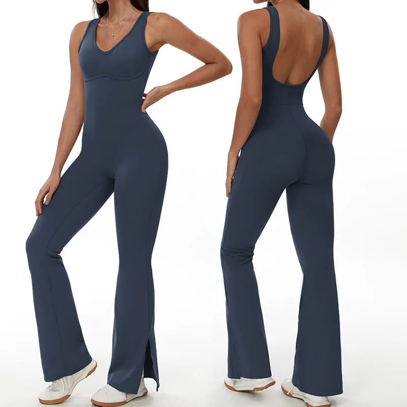 Roregal Customizable Logo Stretch Waist One Piece Bodysuit Fitness Yoga Wear Sleeveless Workout Hollow Back Women Jumpsuit
