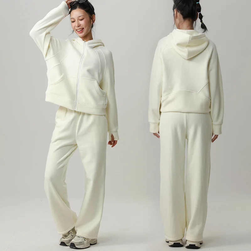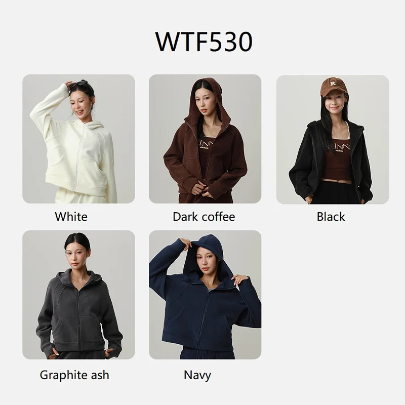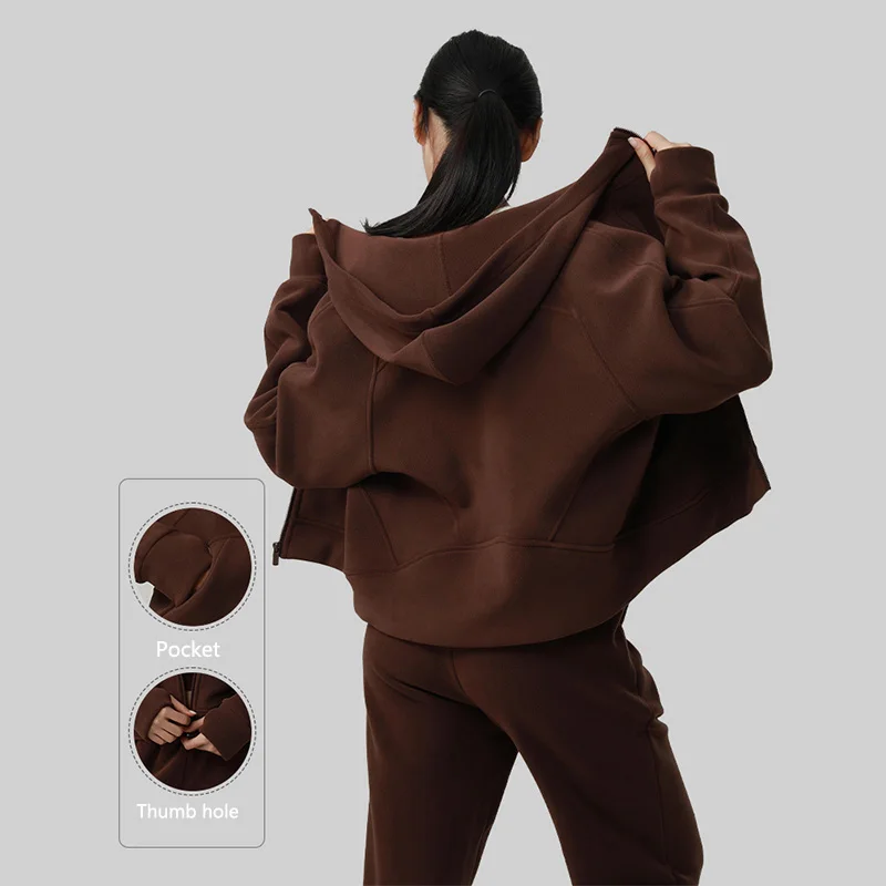 Roregal Women's Autumn Winter Fleece Yoga Coat Large Pockets Hooded Sweatshirt Sporty Outerwear Warm Jacket