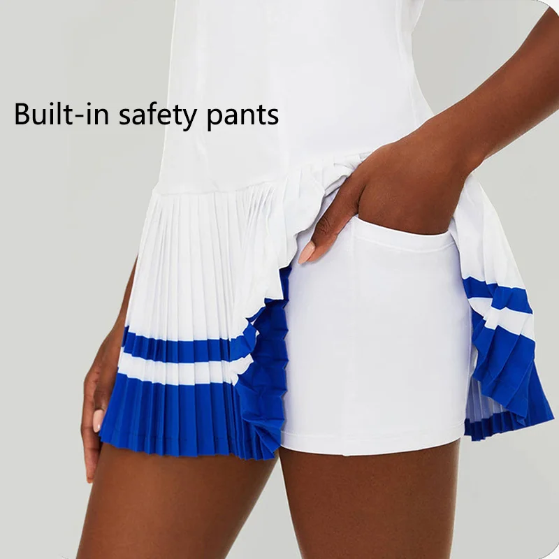 YISHENHON New Design Fake-two Sports Dress Female Anti-slip Outdoor Running Fitness Tennis Dress Women With High Quality