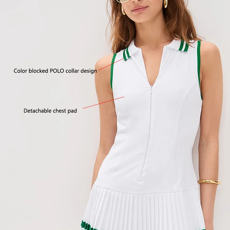 YISHENHON Women's Outdoor Running Tennis Skirt Anti-slip A-Line Skirt with Stand Collar and One Piece Dress Cloud Sense Design