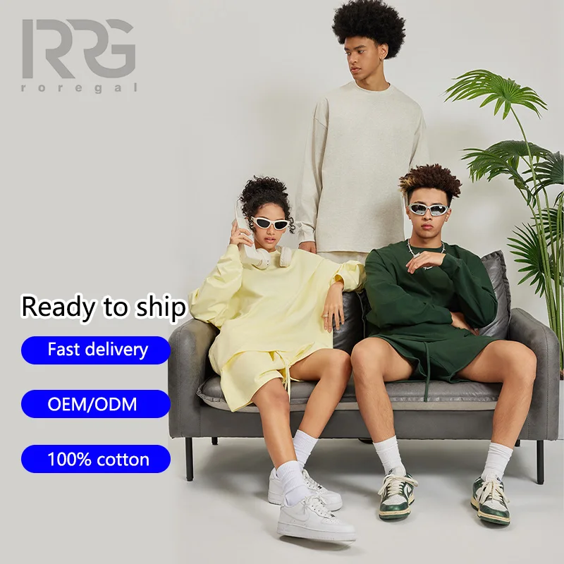 Roregal 2026 Spring Solid Color 100% Cotton Long Sleeve Oversized T-Shirt Round Neck Casual Couple Matching Tee