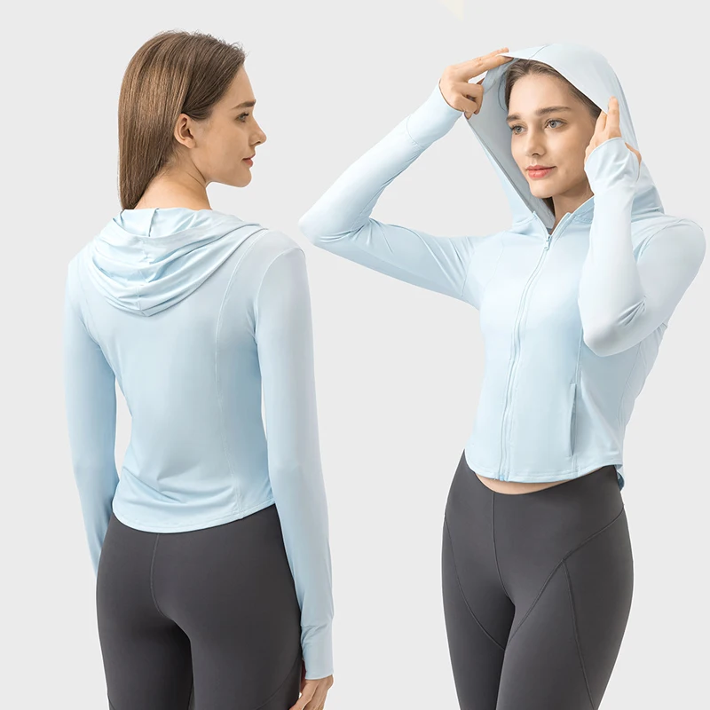 YISHENHON Custom Women's Yoga Jackets Thumb Hole Zipper Lightweight Fitness Sports Jackets Workout Yoga Clothing With Pocket