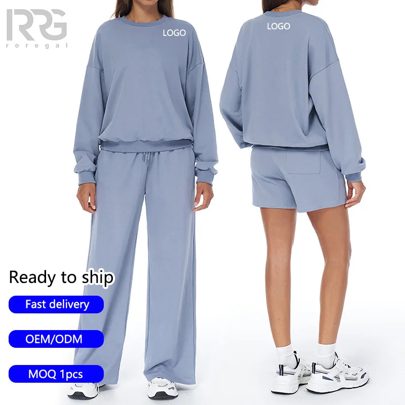 Roregal Custom Logo Gym Running Training Sportswear 2 Piece Long Sleeve Top and Pant Workout Wear Sets for Women