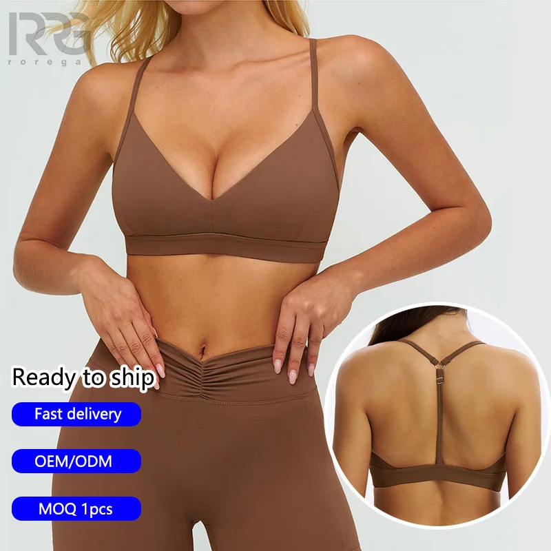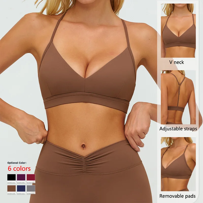 Roregal Women's Removable Padding Brushed V-Neck Adjustable Straps Y-Back Design Sports Bra for Yoga Gym Running