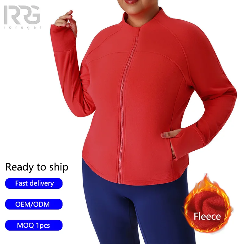 Roregal Custom Plus Size Women's Gym Zipper Jacket Quick Dry Workout Running Sports Fleece Jacket With Pocket