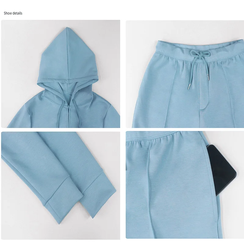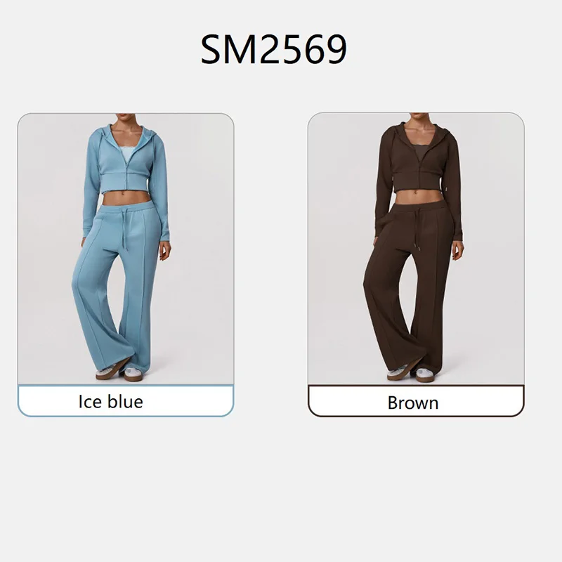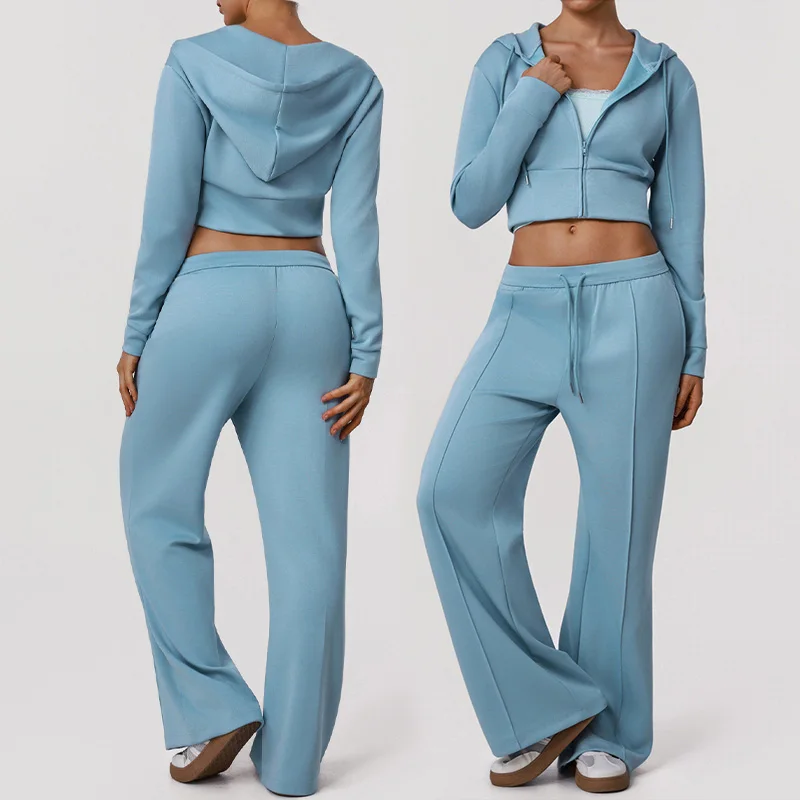 Roregal 2026 Fall/Winter Fashionable Wide Leg Jogger Set Long Sleeve Crop Hooded Top Yoga Sweatpants Set