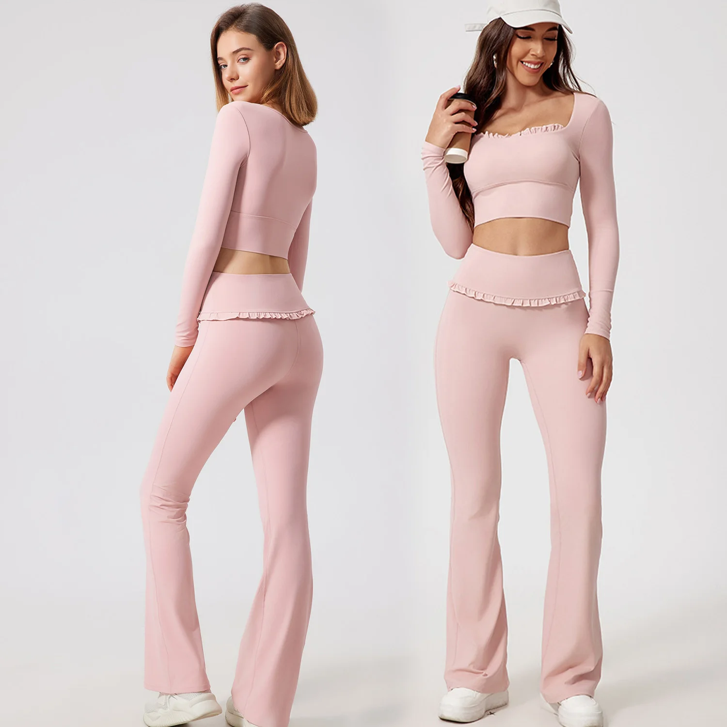 YISHENHON High Quality Gym Yoga Flare Leggings Hot Selling High-Waisted Wide Leg Pants for Women Solid Casual Sport Running