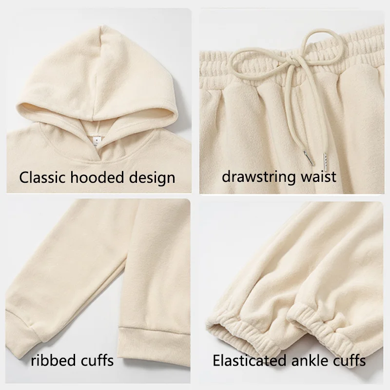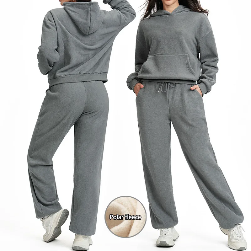 Roregal Polar Fleece Casual Sports Hoodie Tracksuit Set Loose Fit Soft Warm Hoodie Joggers Sweatshirt Set