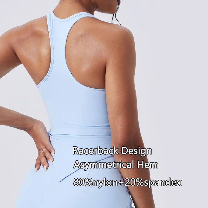 Roregal Second-Skin Feel Double Straps Racerback Irregular Hem Slanted Slit Running Fitness Yoga Vest for Women