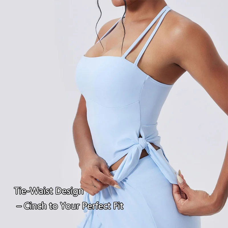 YISHENHON New Design Fake-two Sports Dress Female Anti-slip Outdoor Running Fitness Tennis Dress Women With High Quality