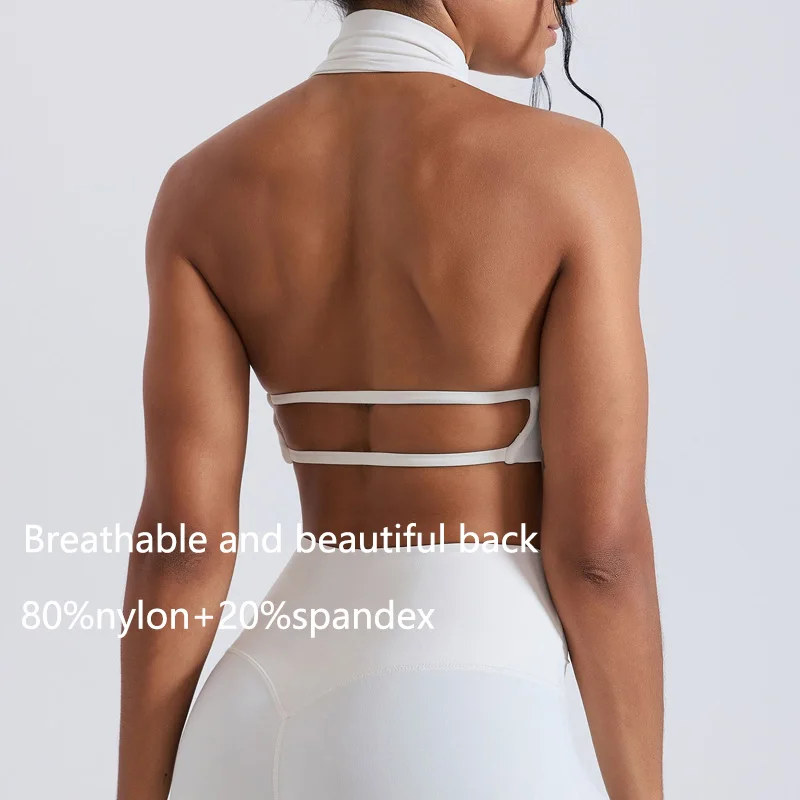 Roregal High Neck Halter Shock-Absorbing Sports Bra Top Open Back Design Workout Crop With Removable Pads