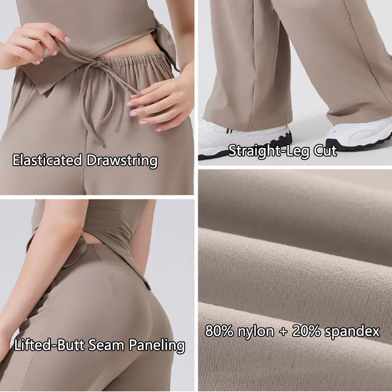 Roregal Outdoor Breathable Fitness Yoga Pants Loose Casual Elastic Waist Adjustable Drawstring Yoga Wide Leg Pants
