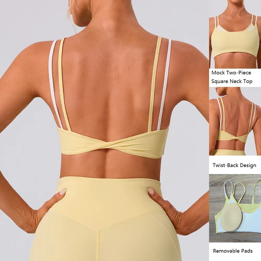 Roregal Double Shoulder Straps Mock Two-Piece Sport Bra Quick-drying Fitness Running Twist-Back Yoga Bra