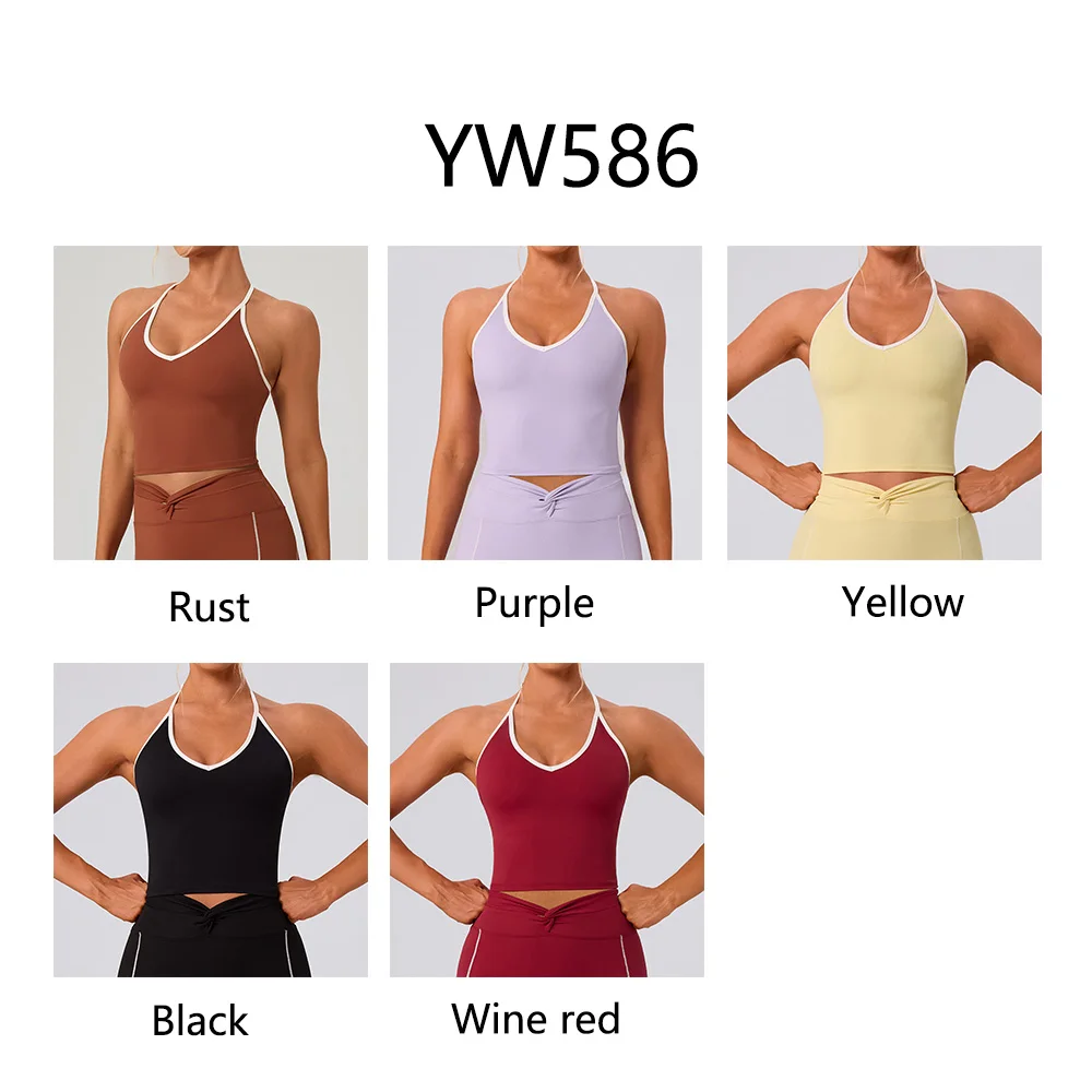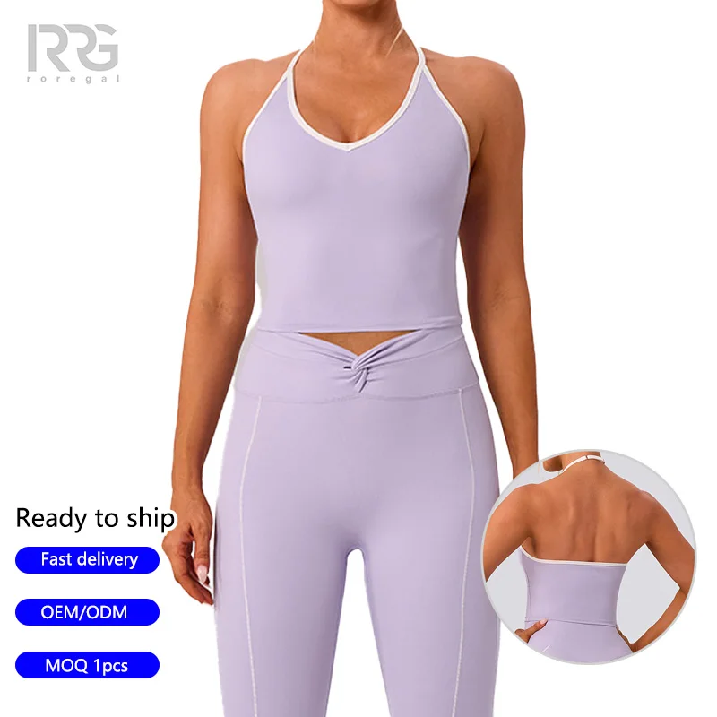 Roregal Contrast Halter Sports Tank Running Gym High Impact Ypga Vest with Chest Pad