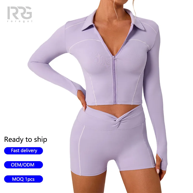 Roregal Workout Gym Activewear Fitness Turn-Down Collar Zip up Jacket Women's Barely-There Sport Yoga Jacket