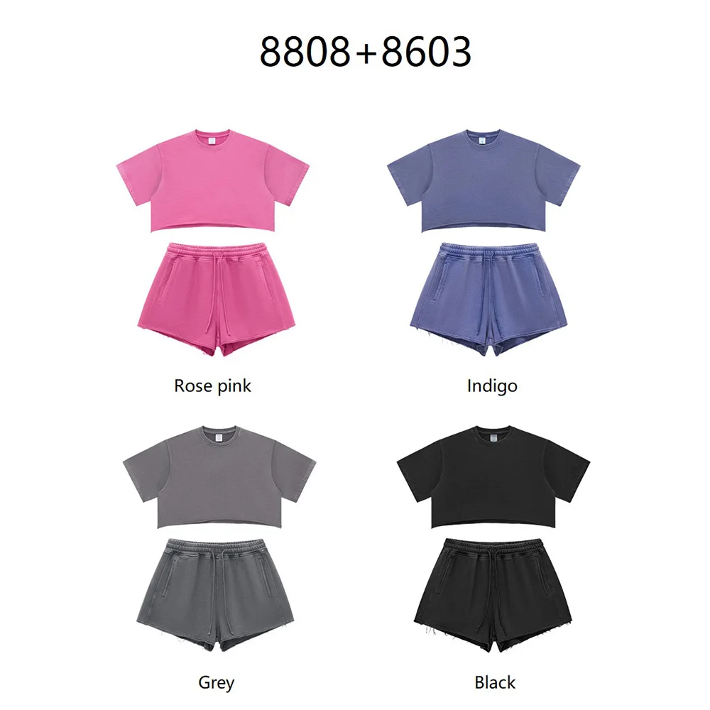 Roregal 2K-Inspired Vintage 100% Cotton Wash Crop Tee Women's 280G Garment-Washed Cropped T-Shirt for Boxy Relaxed Fit