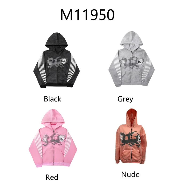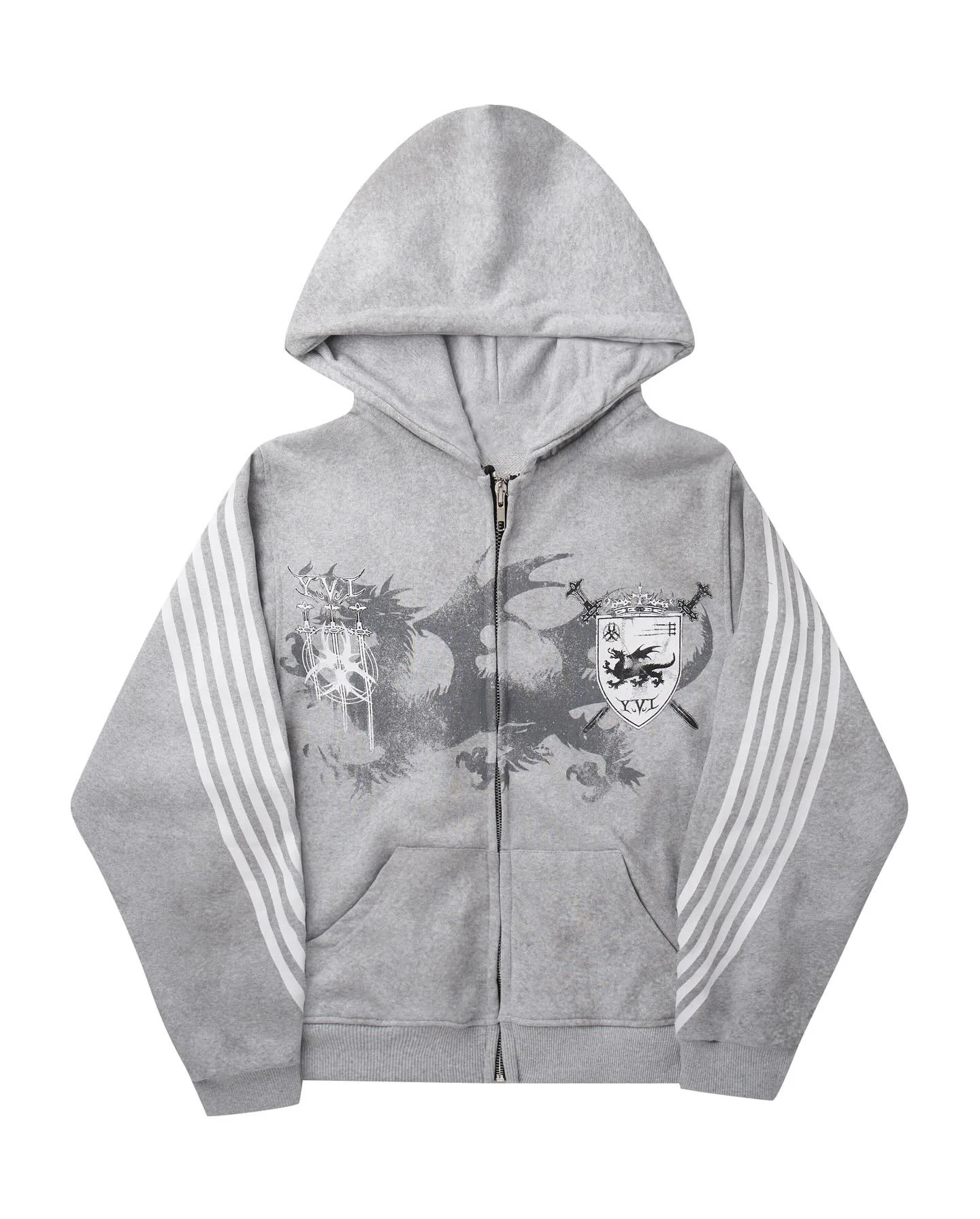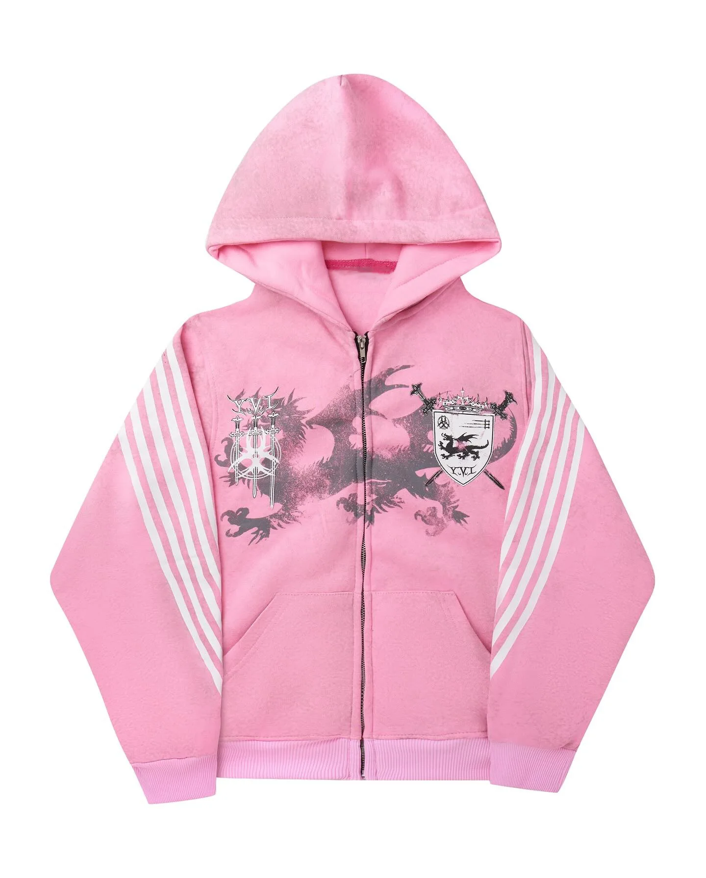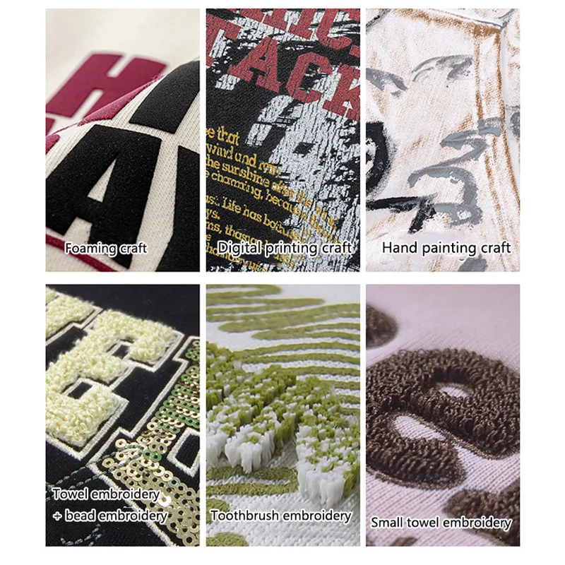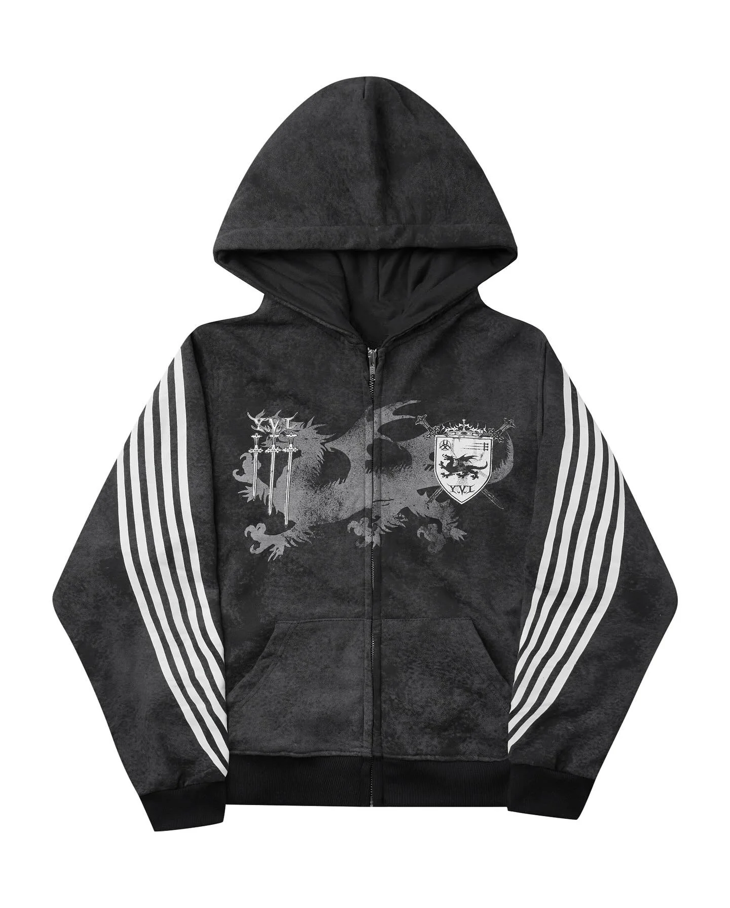 Roregal Casual Men's Vintage Street Oversized Boxy Hoodie Rhinestone Details Printed Hoodie with Pocket