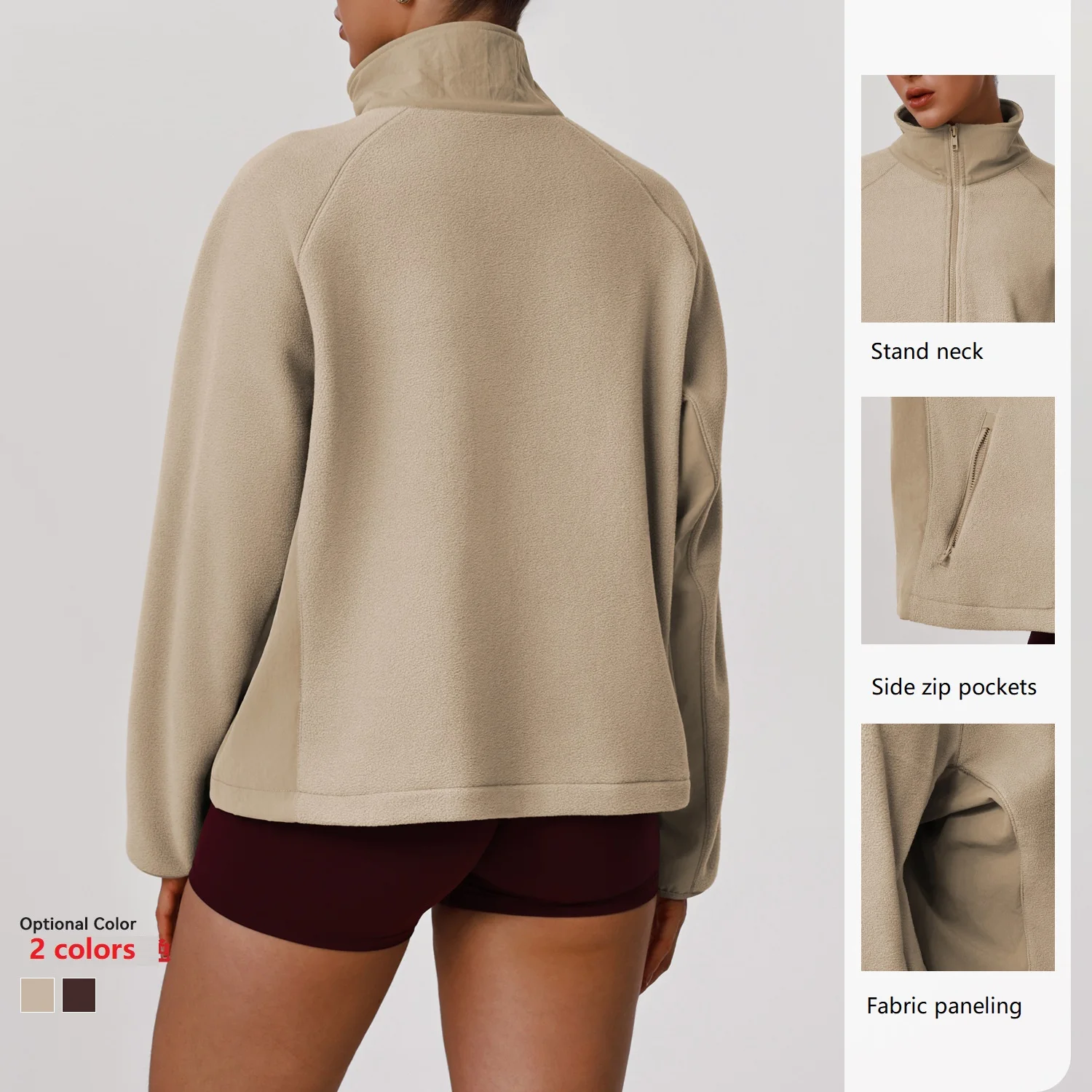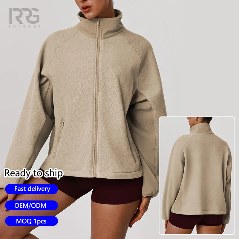 Roregal Fall /Winter Women's Stand Collar Fleece Warmth Full-Zip Jacket Loose Casual Coat with Pocket