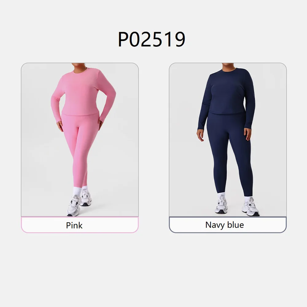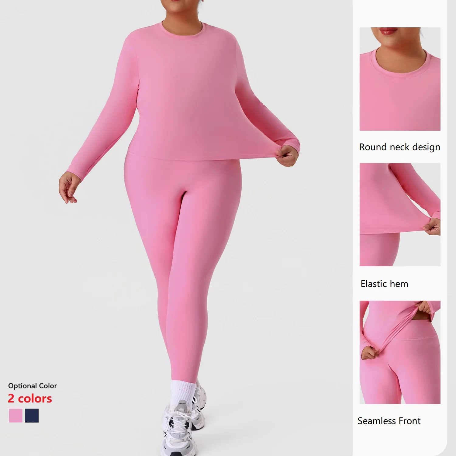 Roregal Lightweight Plus Size Two-piece Yoga Set Fitness Women Long Sleeve Top Yoga Leggings Sets