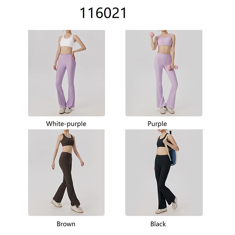 YISHENHON High Quality Gym Yoga Flare Leggings Hot Selling High-Waisted Wide Leg Pants for Women Solid Casual Sport Running