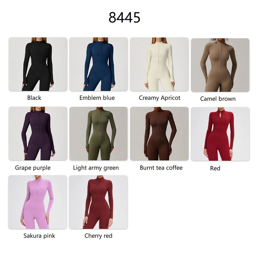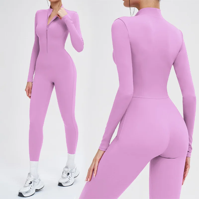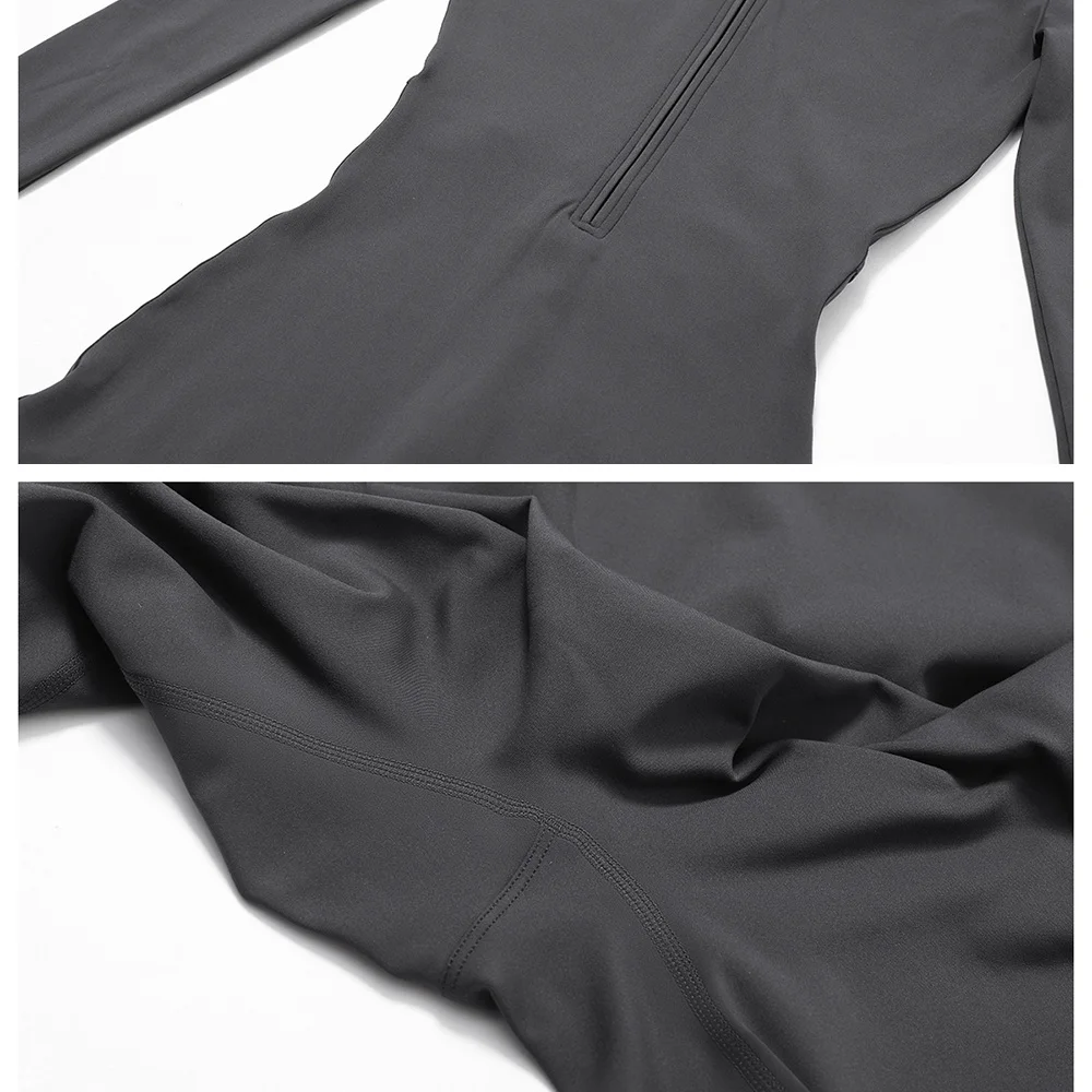 Roregal Tight Yoga Zipper Long Sleeve Warm Fleece Exercise Jumpsuit Quick Dry Running Fitness Sports Yoga Jumpsuit