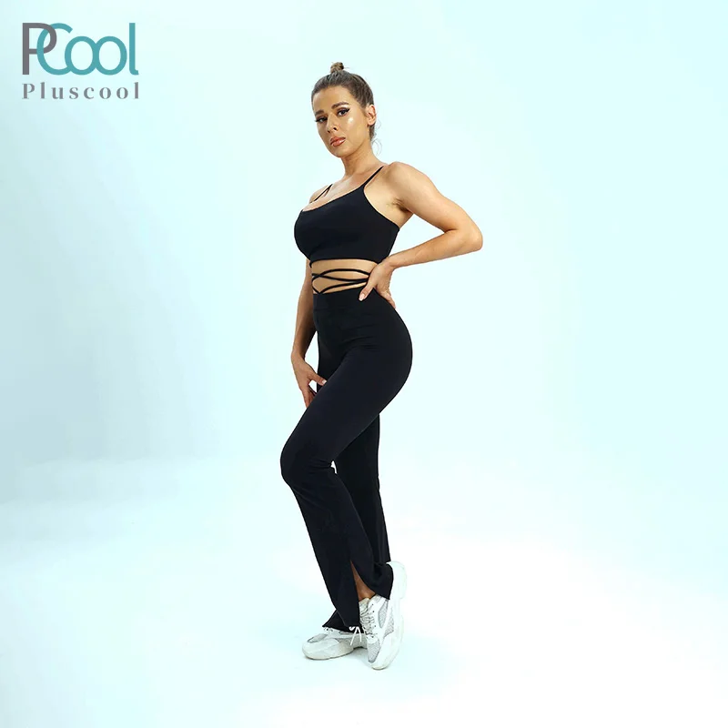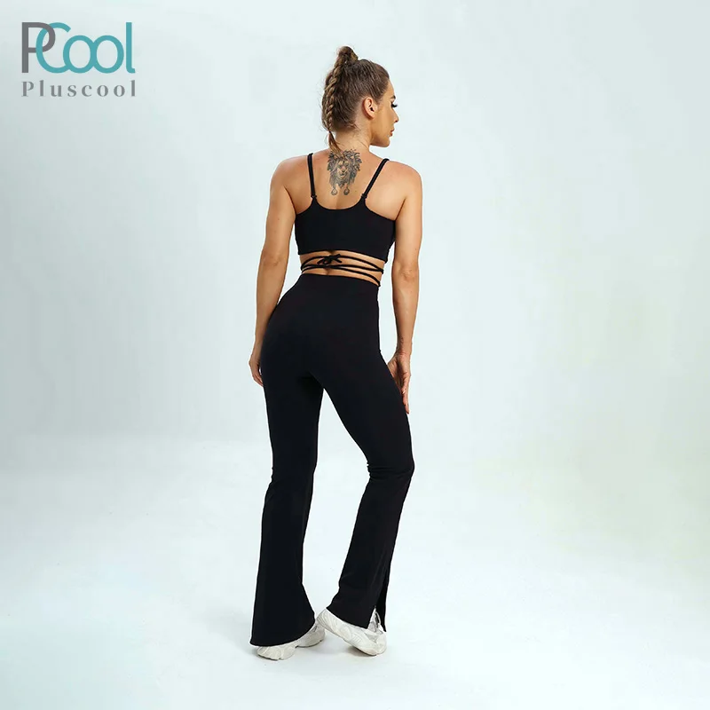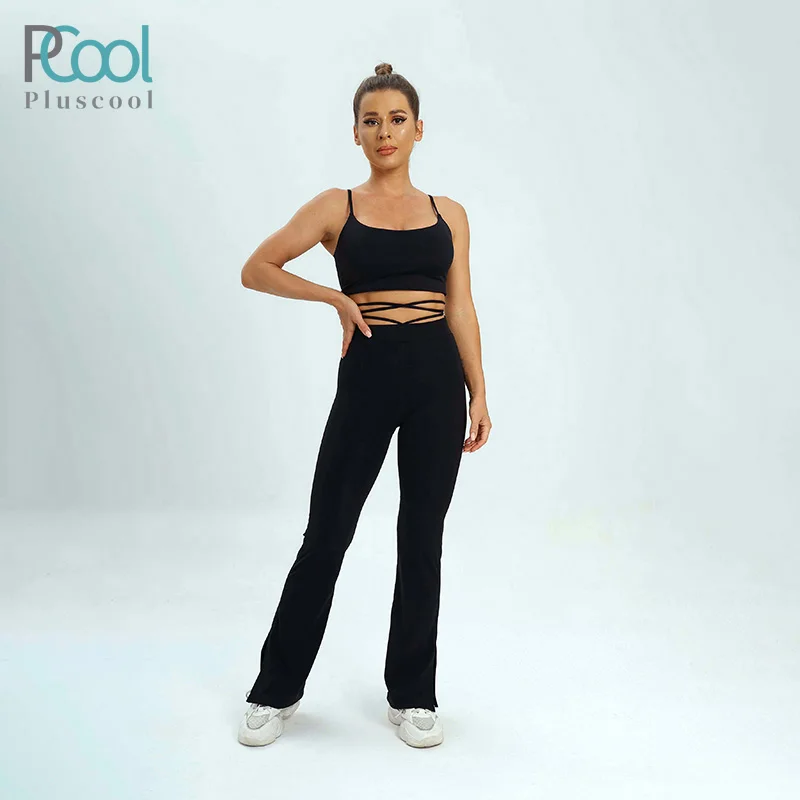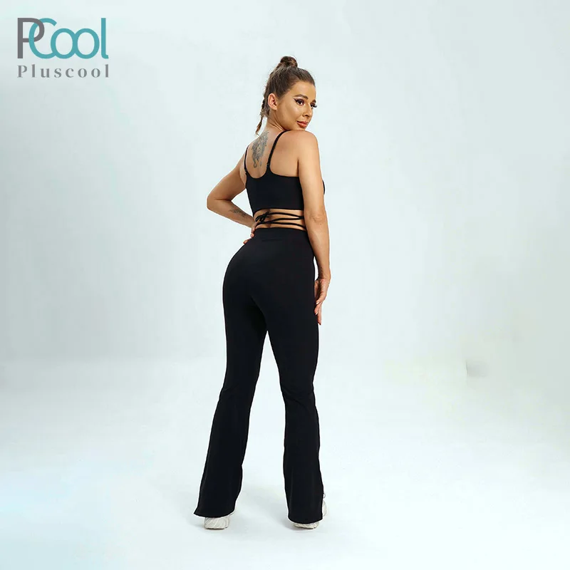 YISHENHON High Quality Gym Yoga Flare Leggings Hot Selling High-Waisted Wide Leg Pants for Women Solid Casual Sport Running