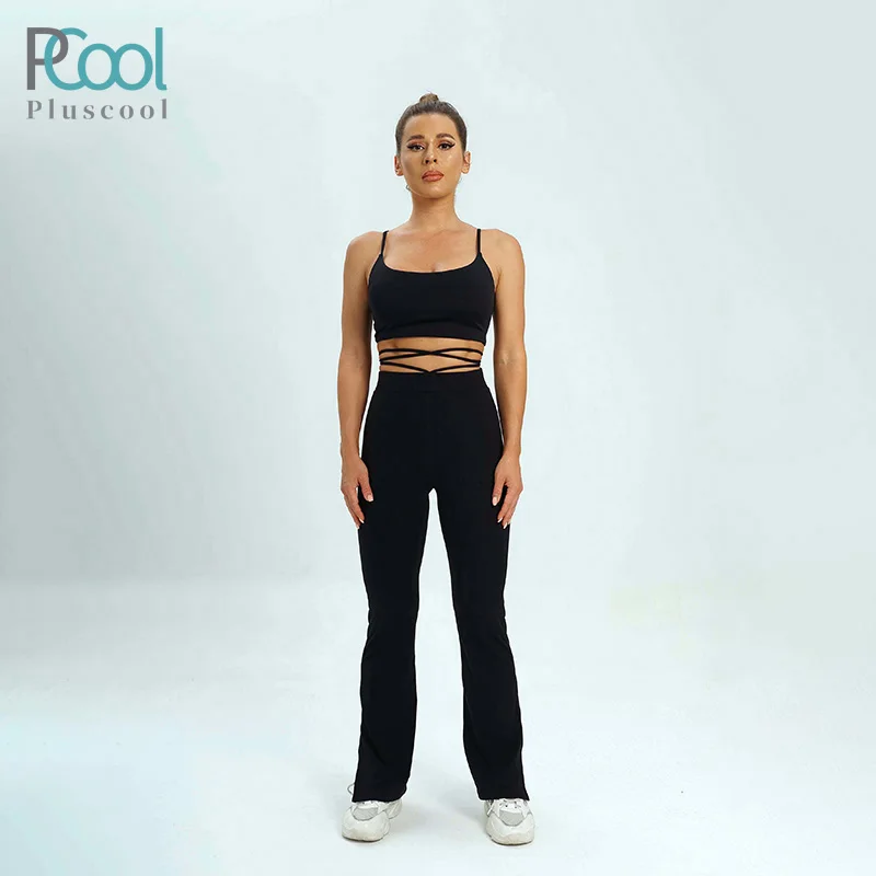 2022 New Arrivals Fashion High Waist Cord Adjustable Pants Gym Wear Sports Women Female Pants Suit Plus Size Activewear Set Yoga