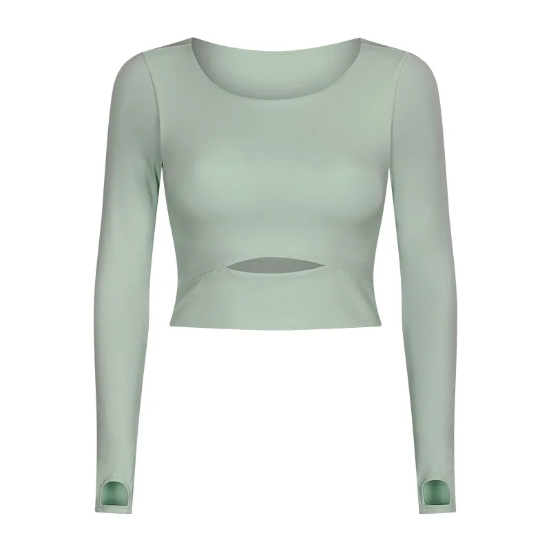 New Style Yoga Long-sleeved Tops with Chest Pads for Women, Waist-exposing Short Sexy Running Sports Fitness Clothes