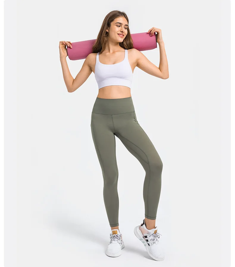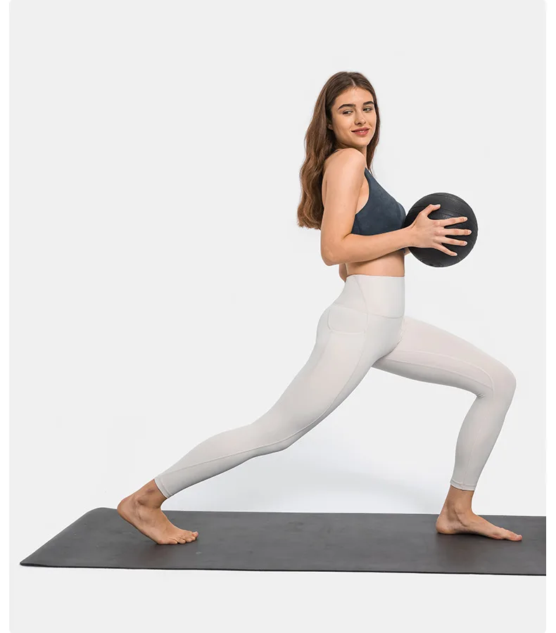 New Upgraded Nude Yoga Pants with High Waist, Abdominal Side Pockets, Sports Running and Fitness Nine-point Pants