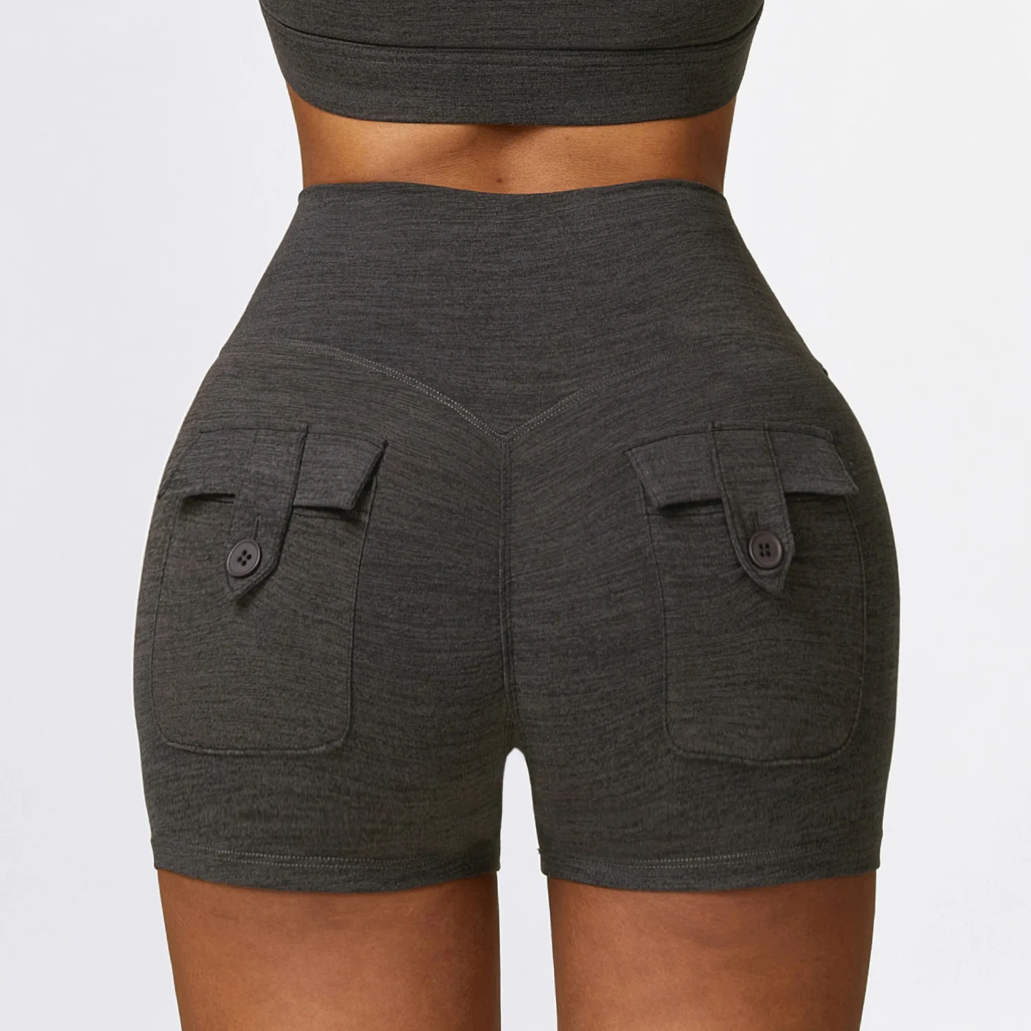 Cationic Scrubs High Waist Yoga Shorts Pockets Hip Lifting Fitness Pants Running Tight Athletic Shorts