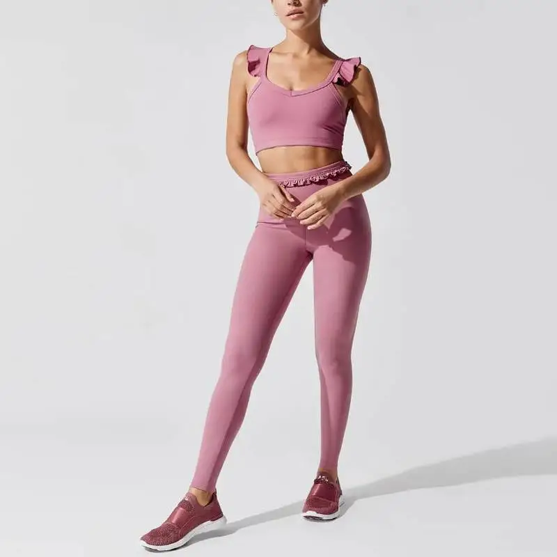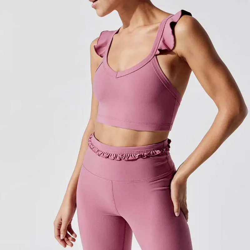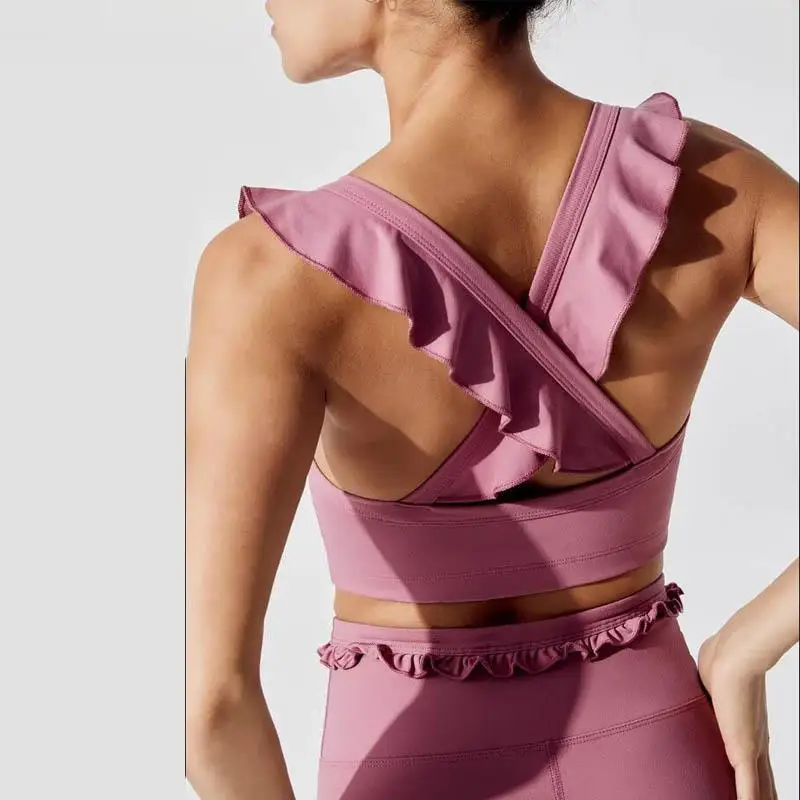 Women Sport Bra Top Fitness Cross Back Straps with Added Ruffles