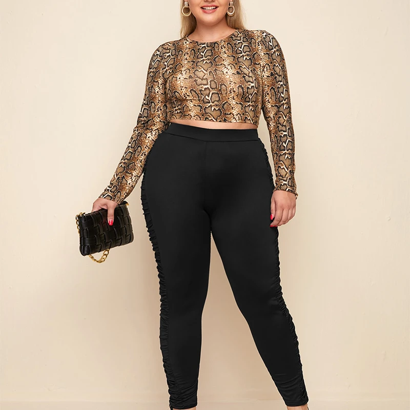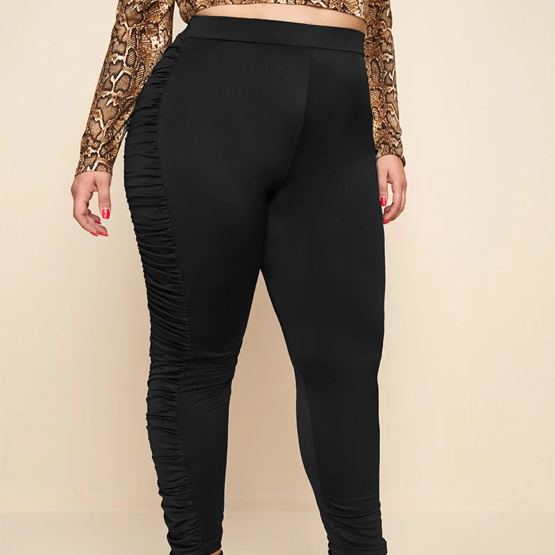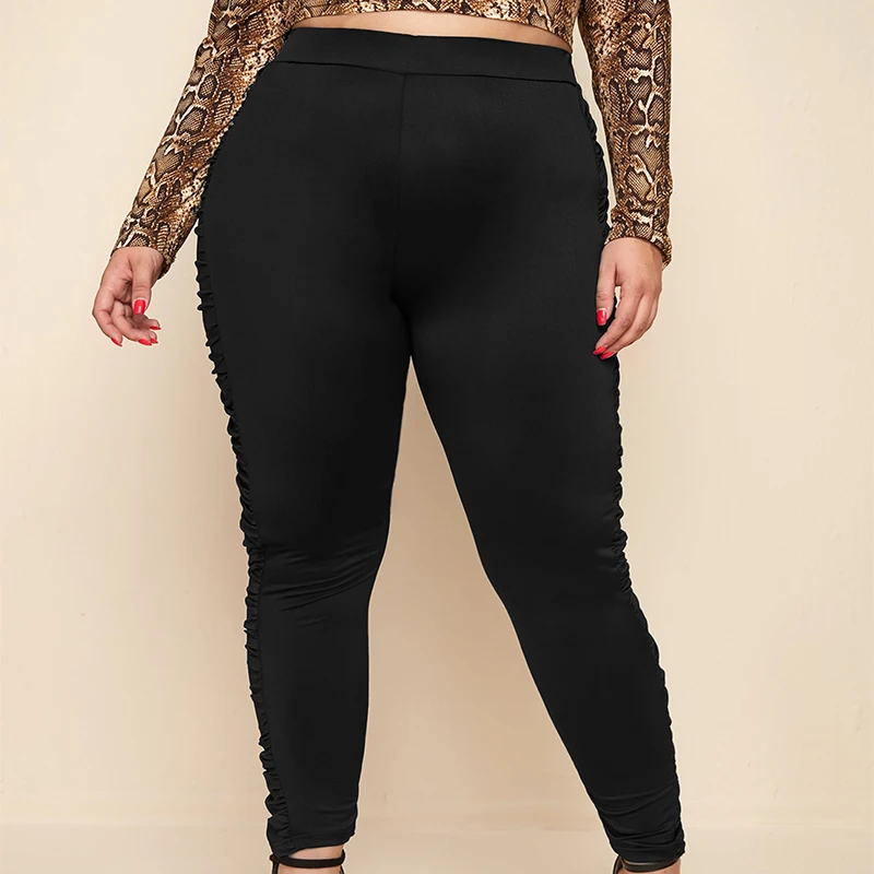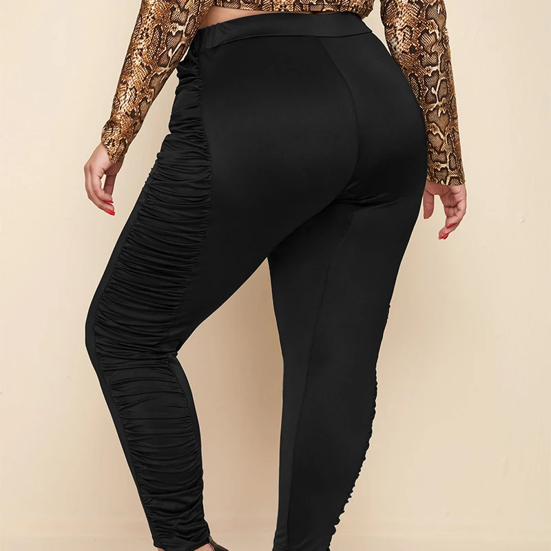 Over Size Fashion Women Casual Mid Waist Pleated Ripped Plus Size Stacked Leggings