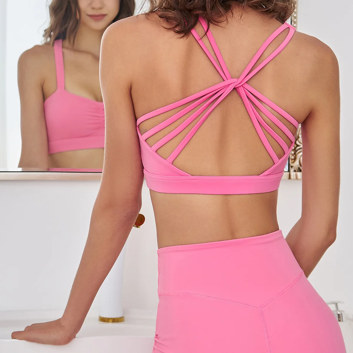 2023 Yoga Cross Back Female Nude Beauty Back Gather Strap Wireless Fitness Sports Vest Bra