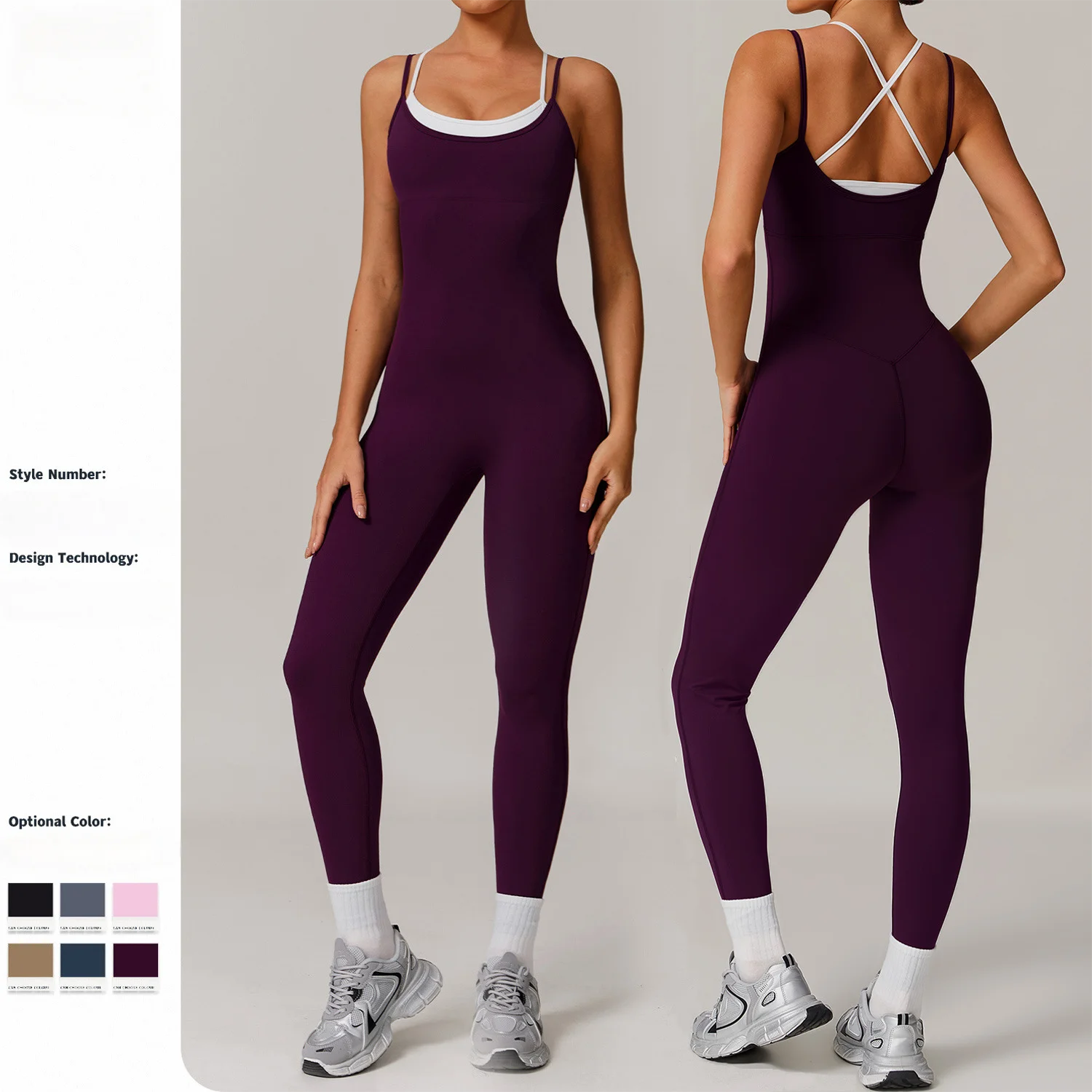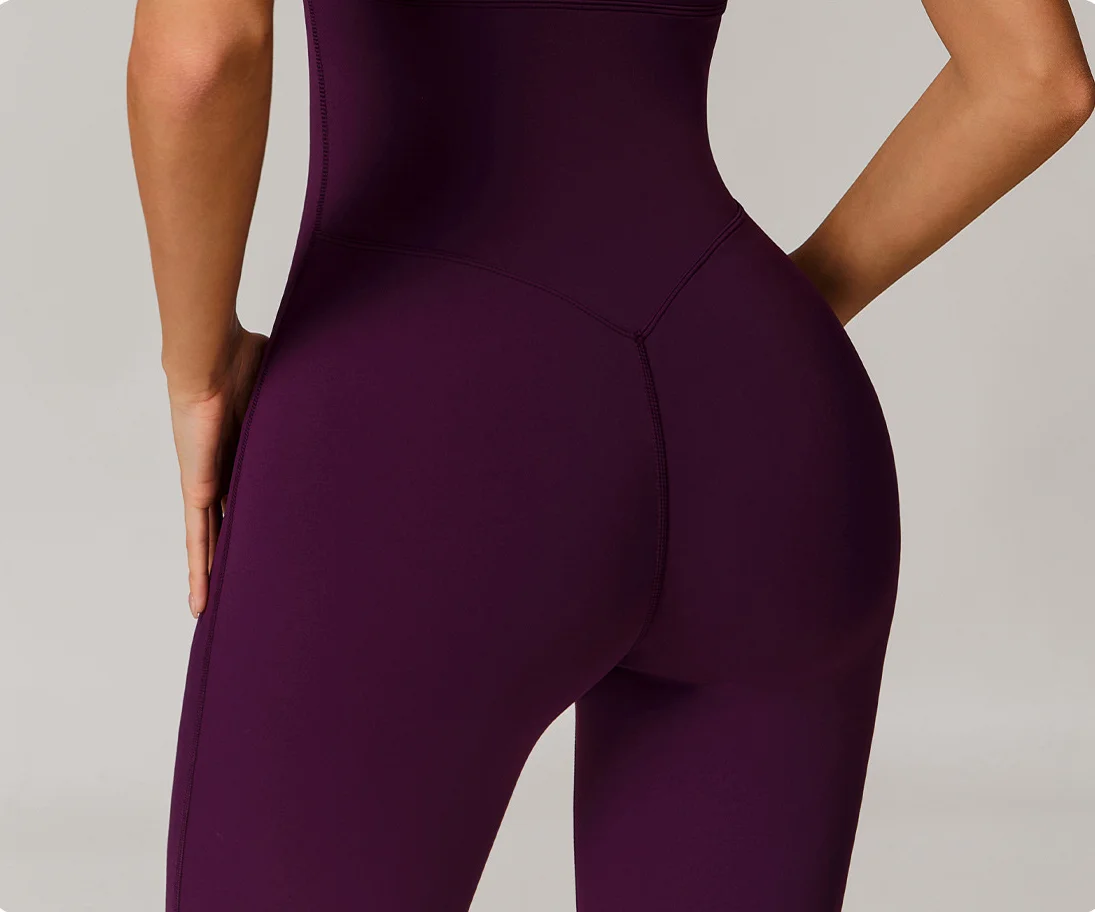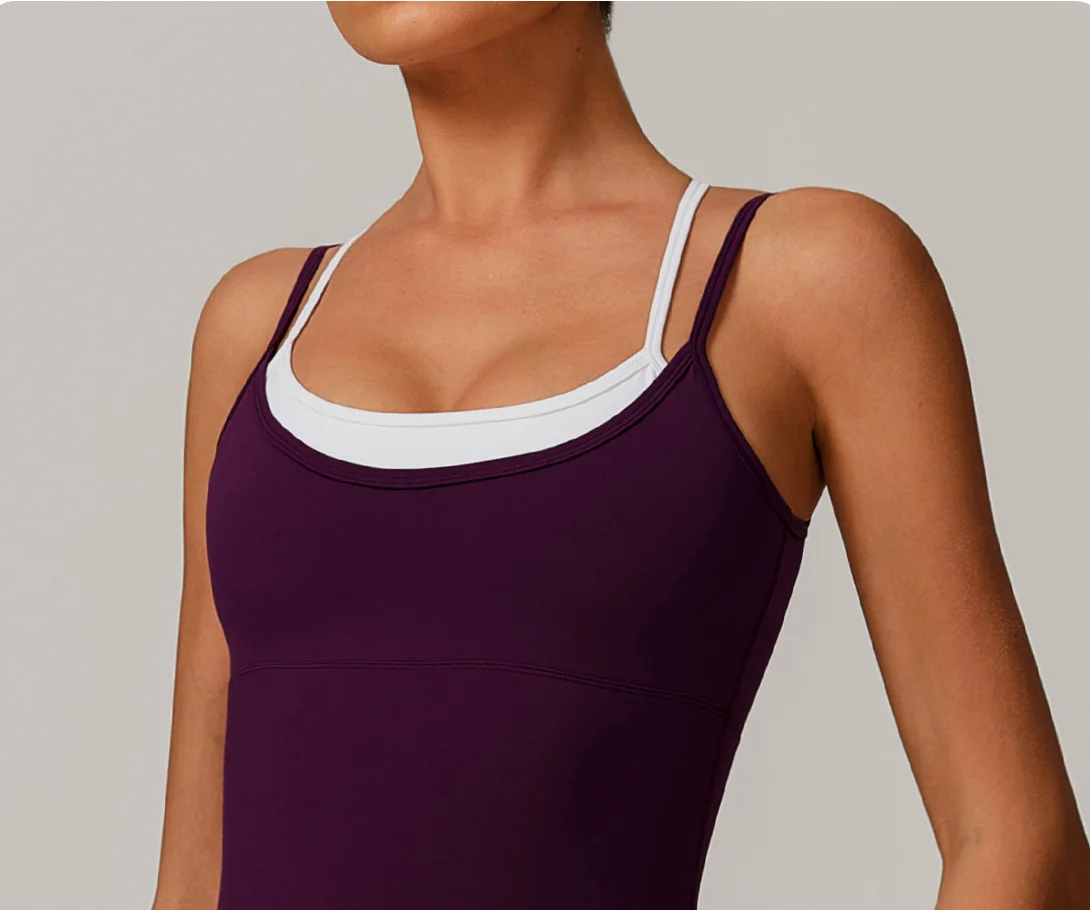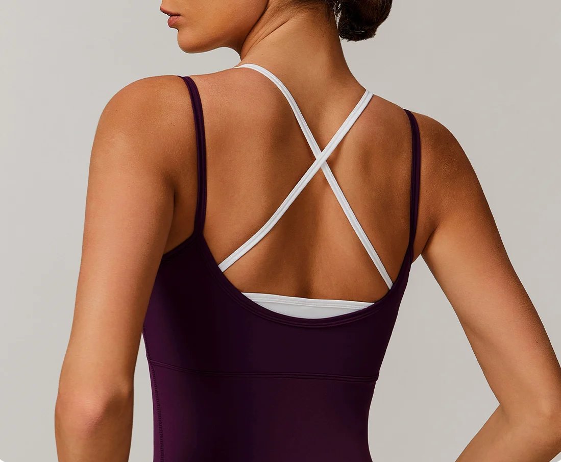 Two-Tone Color-Blocked Strappy Sports Bodysuit - Yoga Open-Back Active Outdoor Workout Jumpsuit