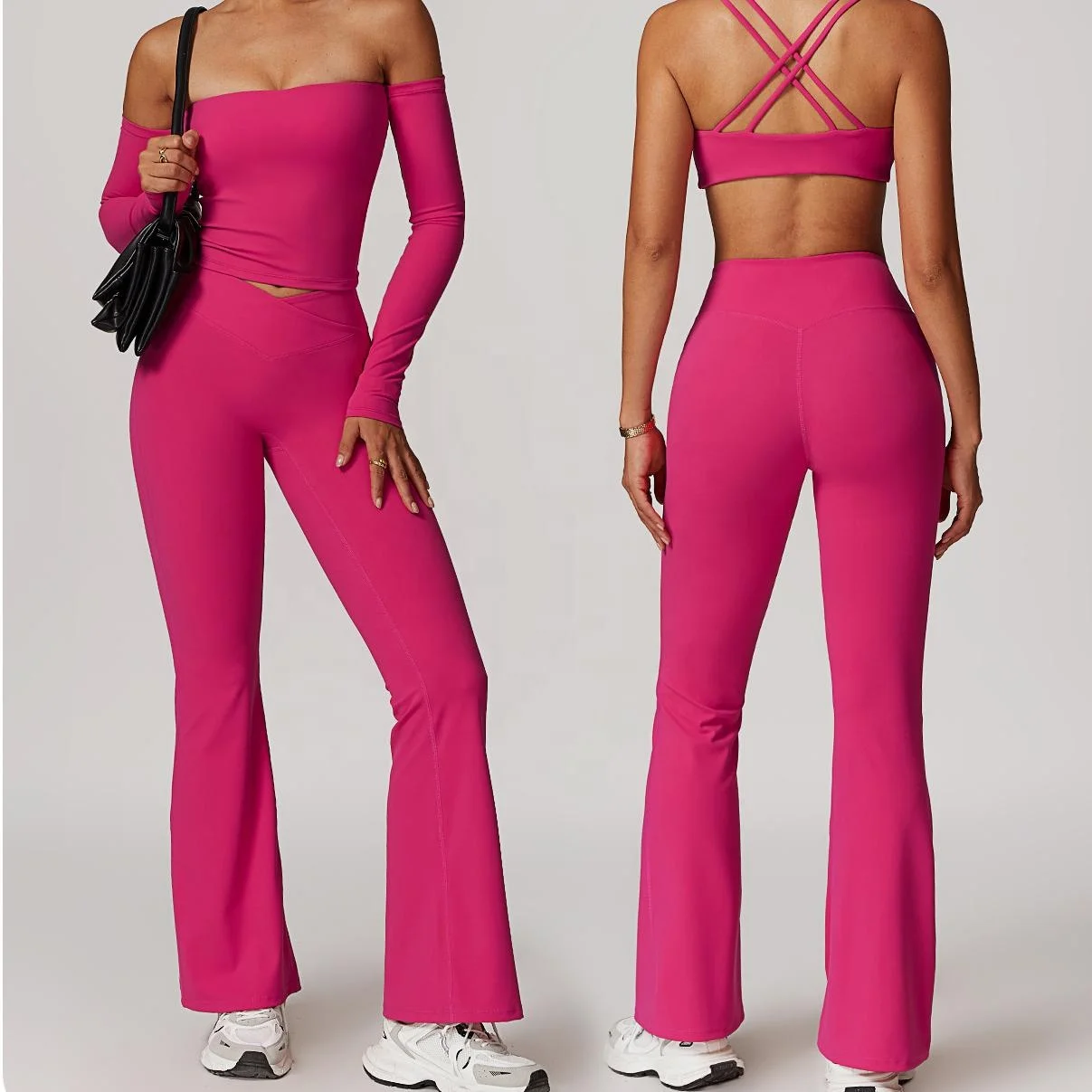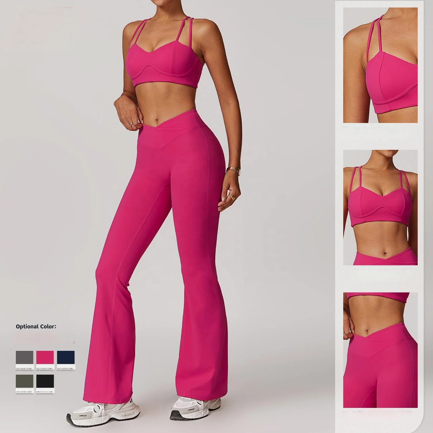 YISHENHON High Quality Gym Yoga Flare Leggings Hot Selling High-Waisted Wide Leg Pants for Women Solid Casual Sport Running