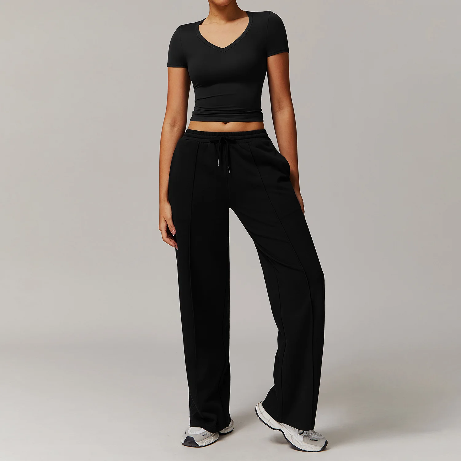 YISHENHON High Quality Gym Yoga Flare Leggings Hot Selling High-Waisted Wide Leg Pants for Women Solid Casual Sport Running