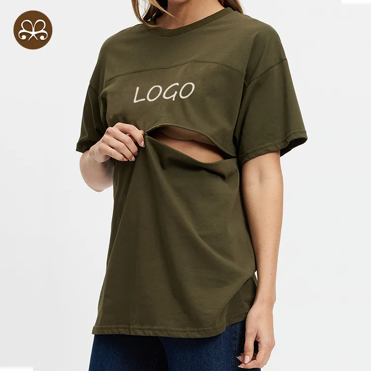 Wholesale Custom Women's Nursing T-shirt Maternity Clothing Casual Short Sleeve High Quality Breastfeeding Tee