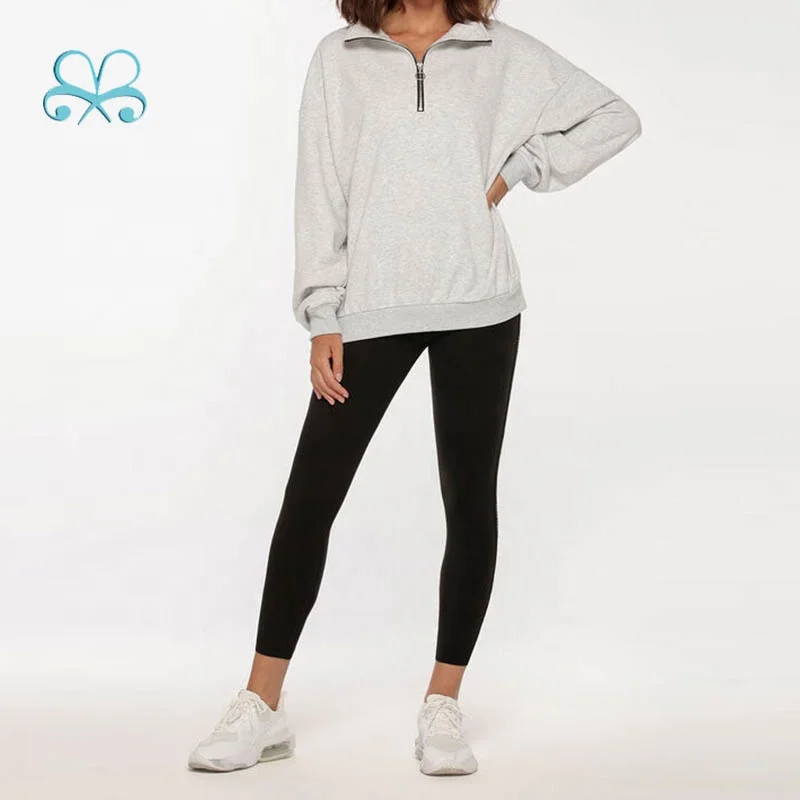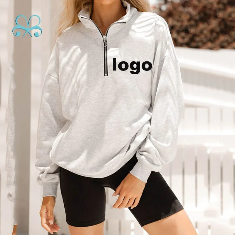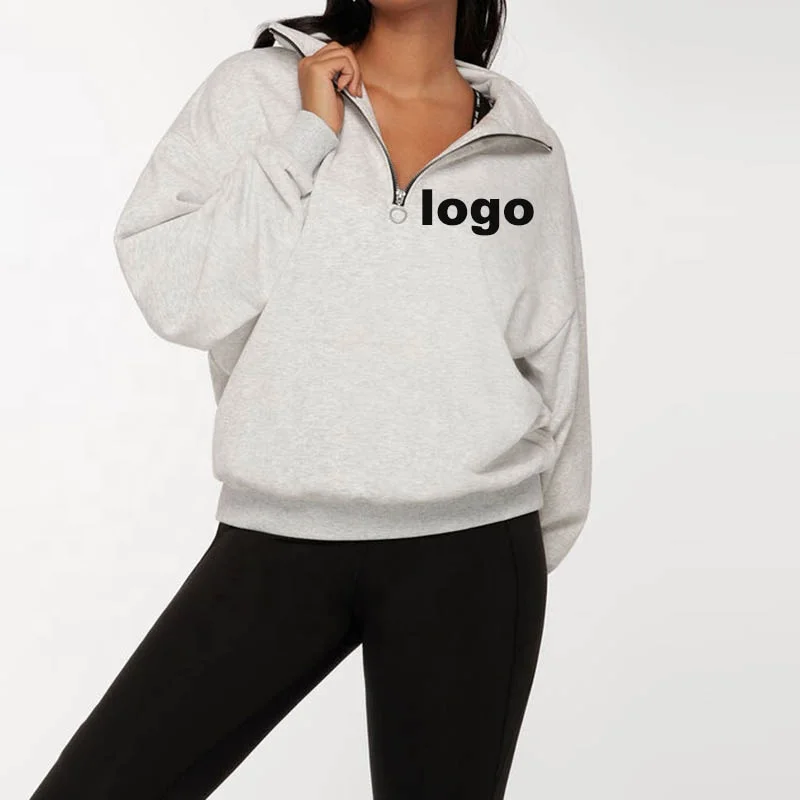 Wholesale Custom logo Women's Sports Hoodies Oversize Half Zip Pull Over Sweatshirt