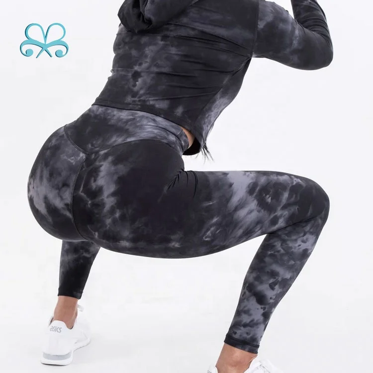 Black Tie Dye Leggings Gym Active Fitness Yoga Pants for Woman
