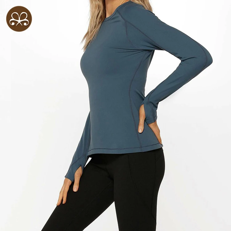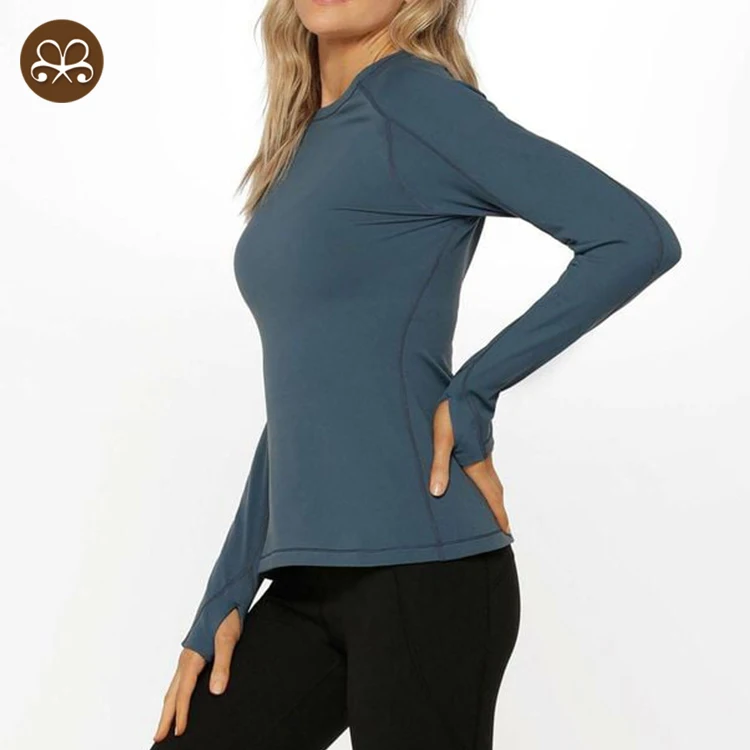 Custom Logo Casual High Quality Cotton Long Sleeve T-Shirt for Women Breathable Sports Yoga Fitness Top