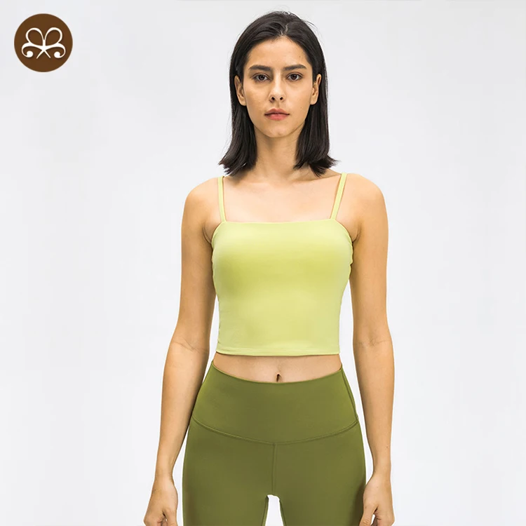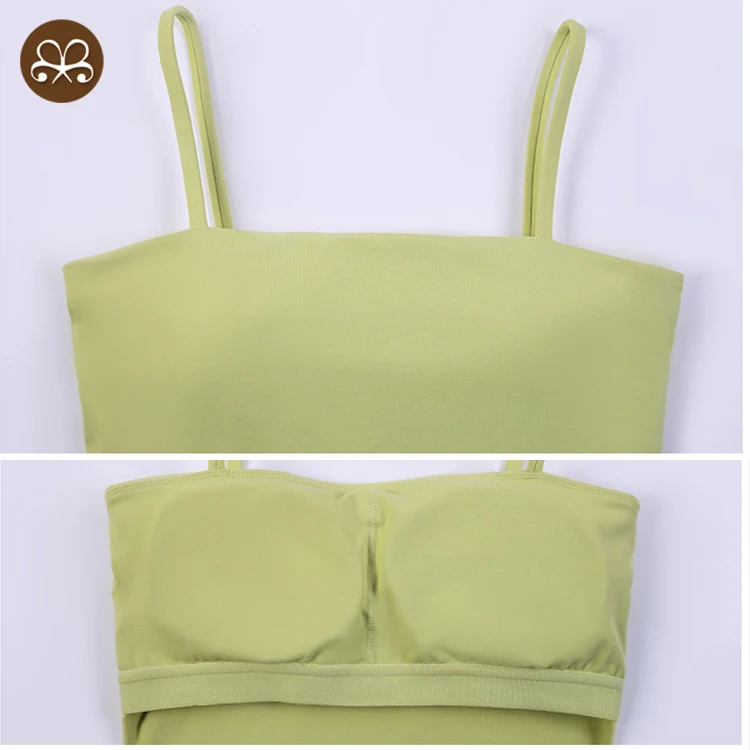 Women tank Bra Cropped Top Summer Gym Athletic tank Top Thin Strap Wireless Modal Sexy Summer Camisole With Bra Padded Tank Tops