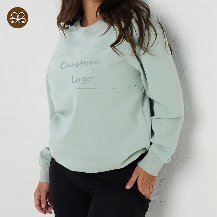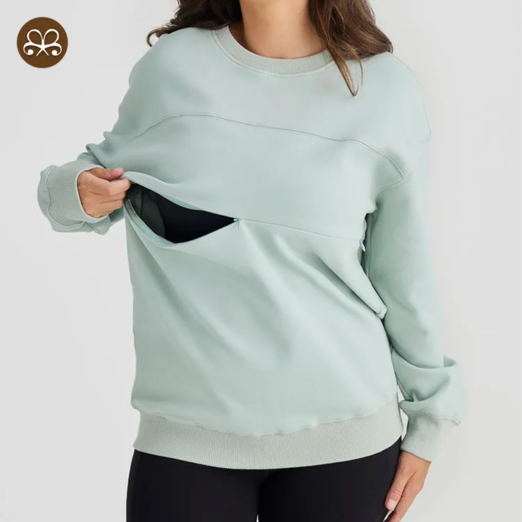 Hot Selling Fleece Maternity Clothing Custom Logo Crew Neck Breastfeeding Sweater Warm Nursing Jumper