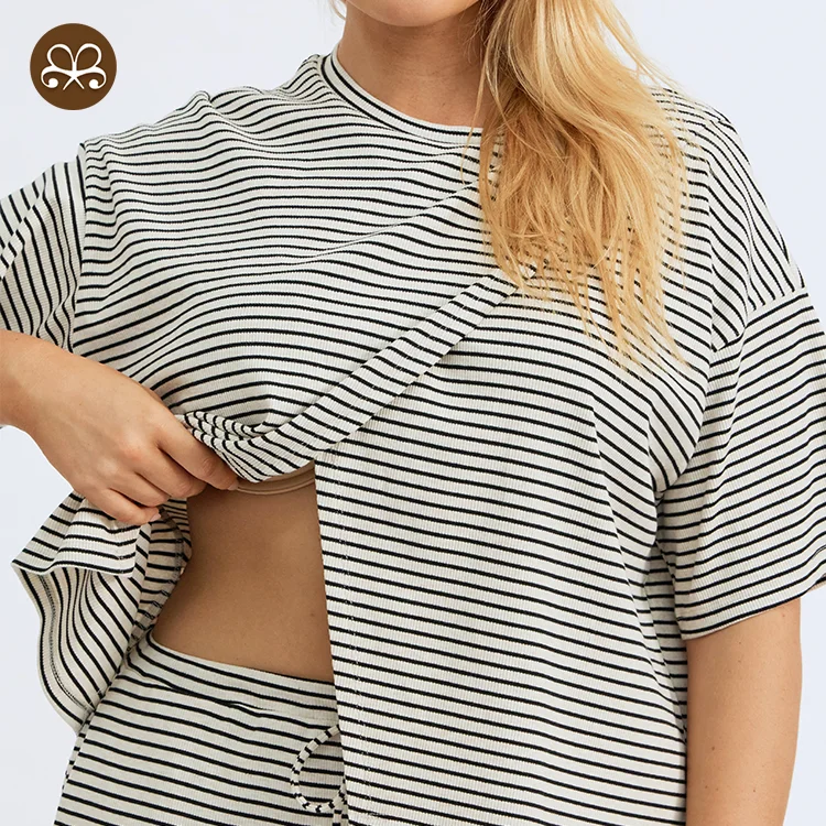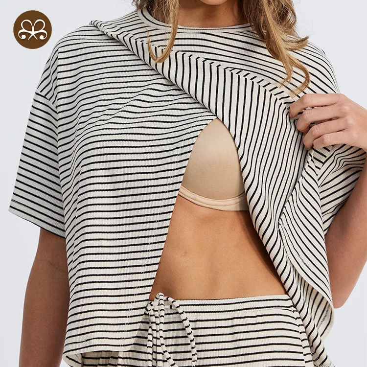Custom Logo Maternity Clothing Loose Tees Breastfeeding T-shirt Oversize Nursing Short Sleeves