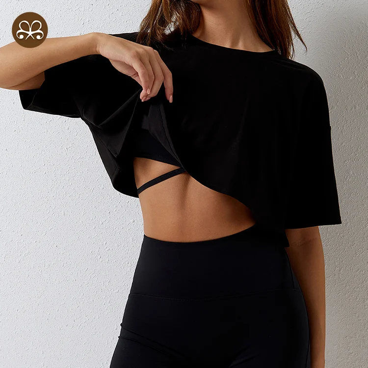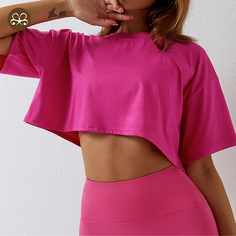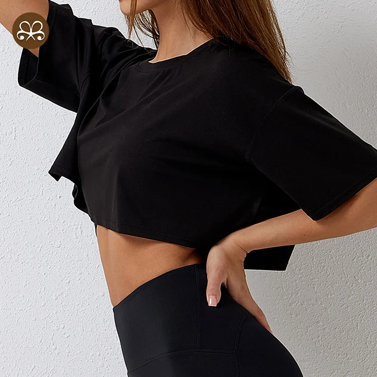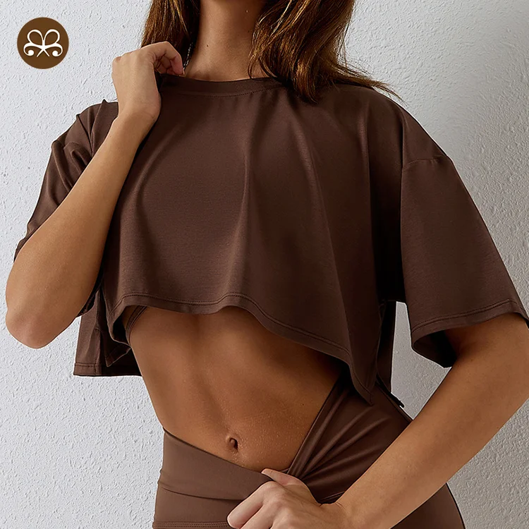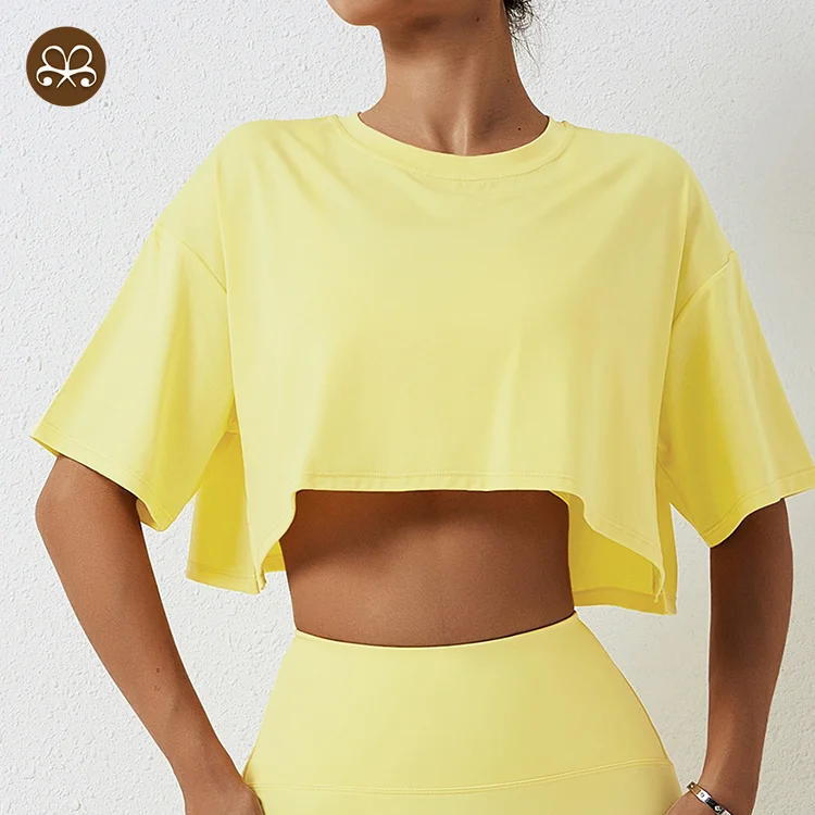 Ready to Ship Wholesale Workout Casual Crop Top Oversize Crew Neck Women's Short Sleeve
