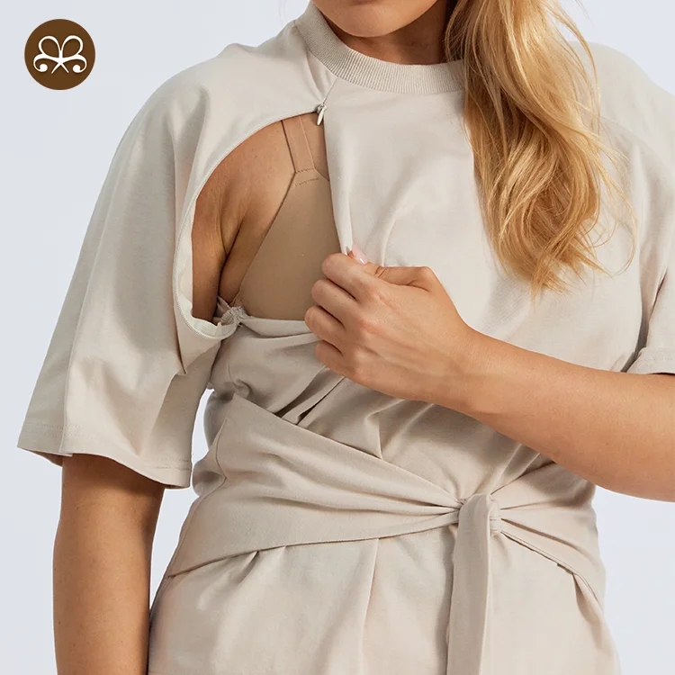 Custom Maternity Clothing 100%cotton Tees Breastfeeding T-shirt Invisible Zippers Mommy Short Sleeves
