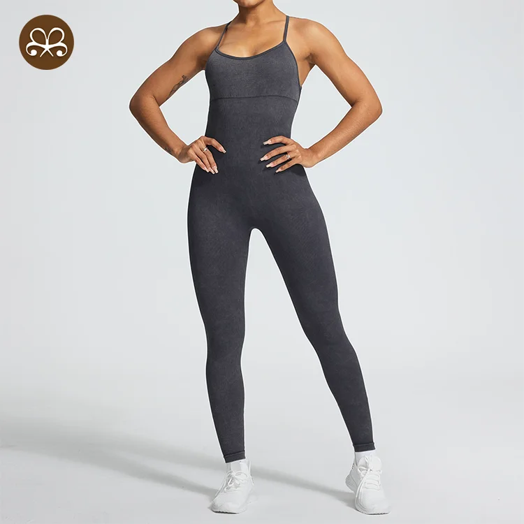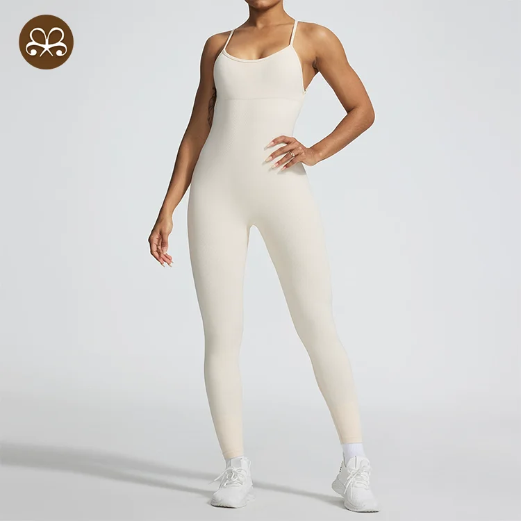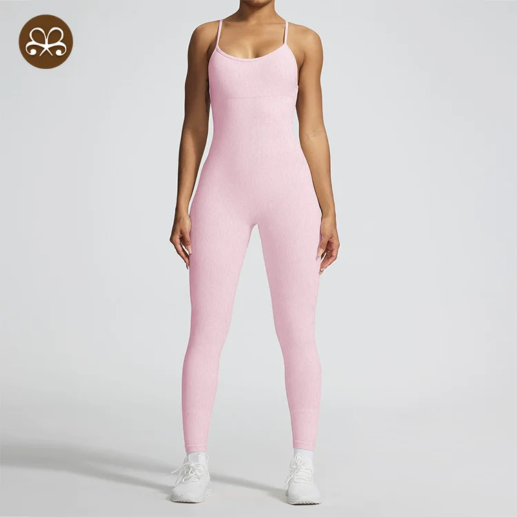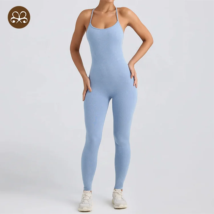 Ready to Ship Breathable Women's Yoga Sexy Cross Back Bodysuit Breathable One Piece Jumpsuit